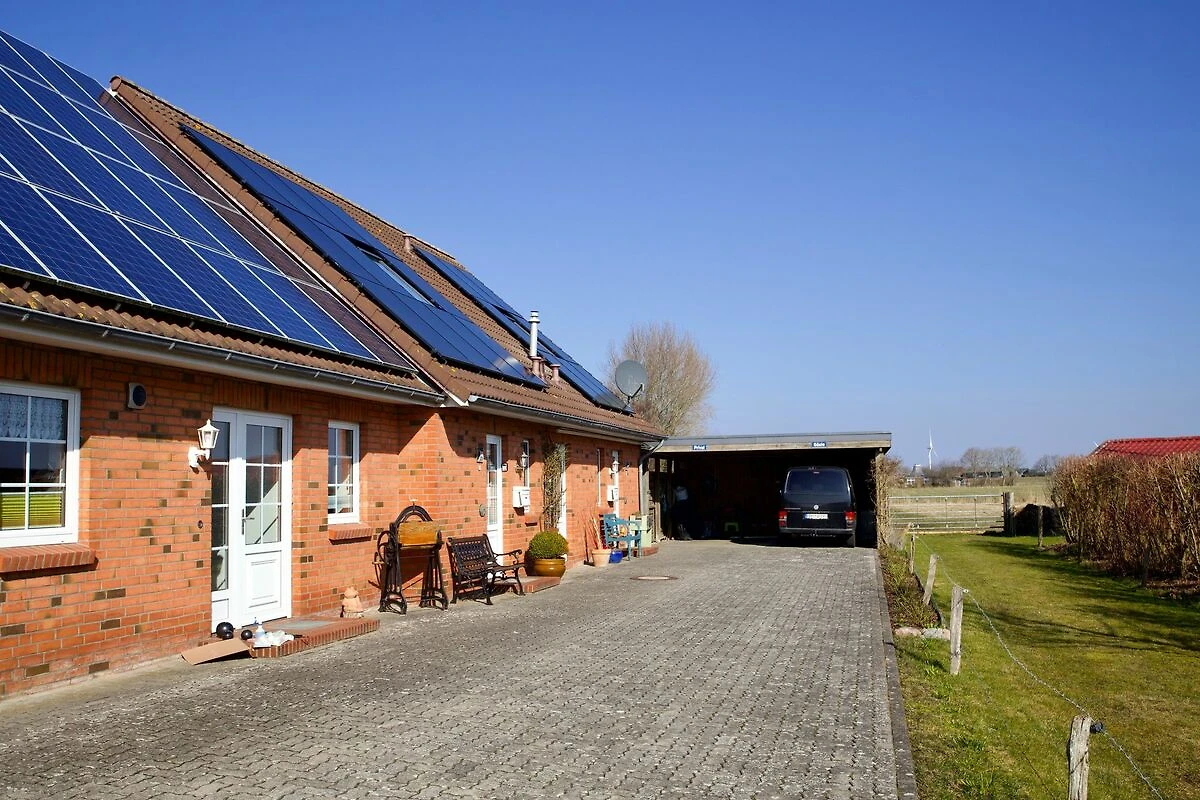 Für Ihr Fahrzeug steht ein Carport direkt am Haus bereit. E-Autos können an der vorhandenen Wallbox gegen Entgelt geladen werden.