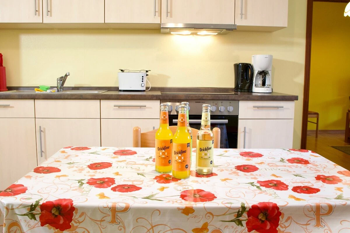 Im ersten Stock des Nebengebäudes des Seetuun-Hoffs befindet sich die Wohnung Dree, eine freundlich gestaltete Ferienwohnung für bis zu vier Personen. Warme Farbtöne und bewusst gesetzte, lebendige Akzente verleihen der Wohnung einen frischen, wohnlichen Charakter und schaffen eine positive, angenehme Atmosphäre.