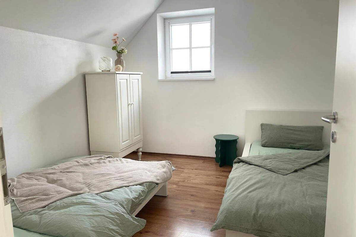 Unsere freundliche und lichtdurchflutete Ferienwohnung befindet sich im ersten Stock über der Garage und verfügt über einen eigenen, separaten Eingang ideal für einen ungestörten und entspannten Aufenthalt