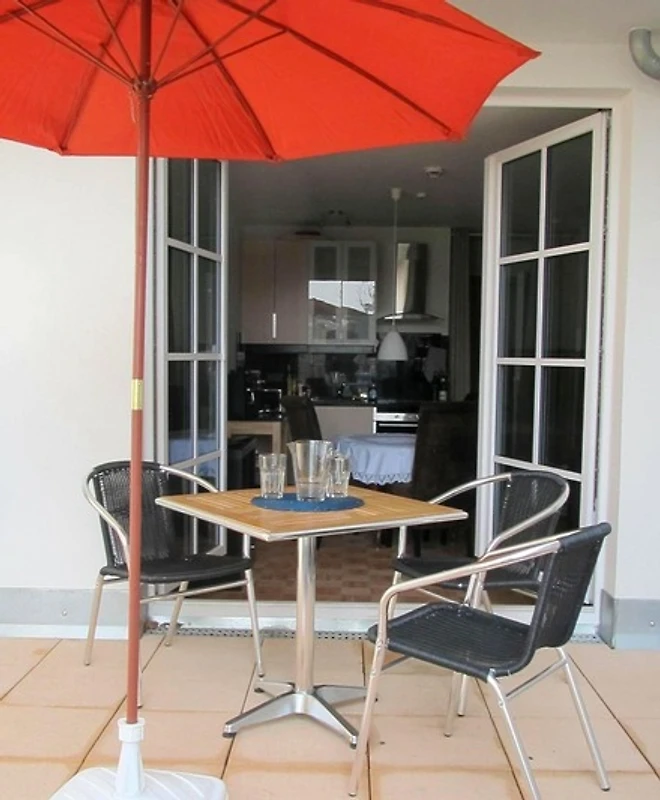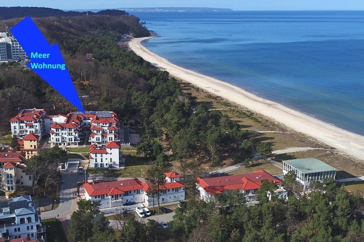 Die komfortable Ferienwohnung mit 2 Zimmer ca. 40 qm mit moderner Küche (voll ausgestattet- Herd, Backofen, Spülmaschine, Espressomaschine usw.), Wohnbereich mit Flachbildschirm, Musikanlage, WLAN usw., modernem Duschbad und möbliertem Südbalkon mit Strandkorb liegt im Apartmenthaus 'Meeresblick', direkt auf der Düne.
