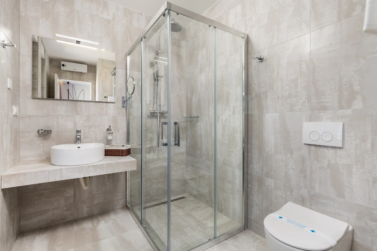 Für maximalen Komfort stehen den Gästen 2 moderne Badezimmer mit Dusche, weichen Handtüchern und Haartrockner zur Verfügung, die einen angenehmen und erfrischenden Start oder Abschluss des Tages ermöglichen.