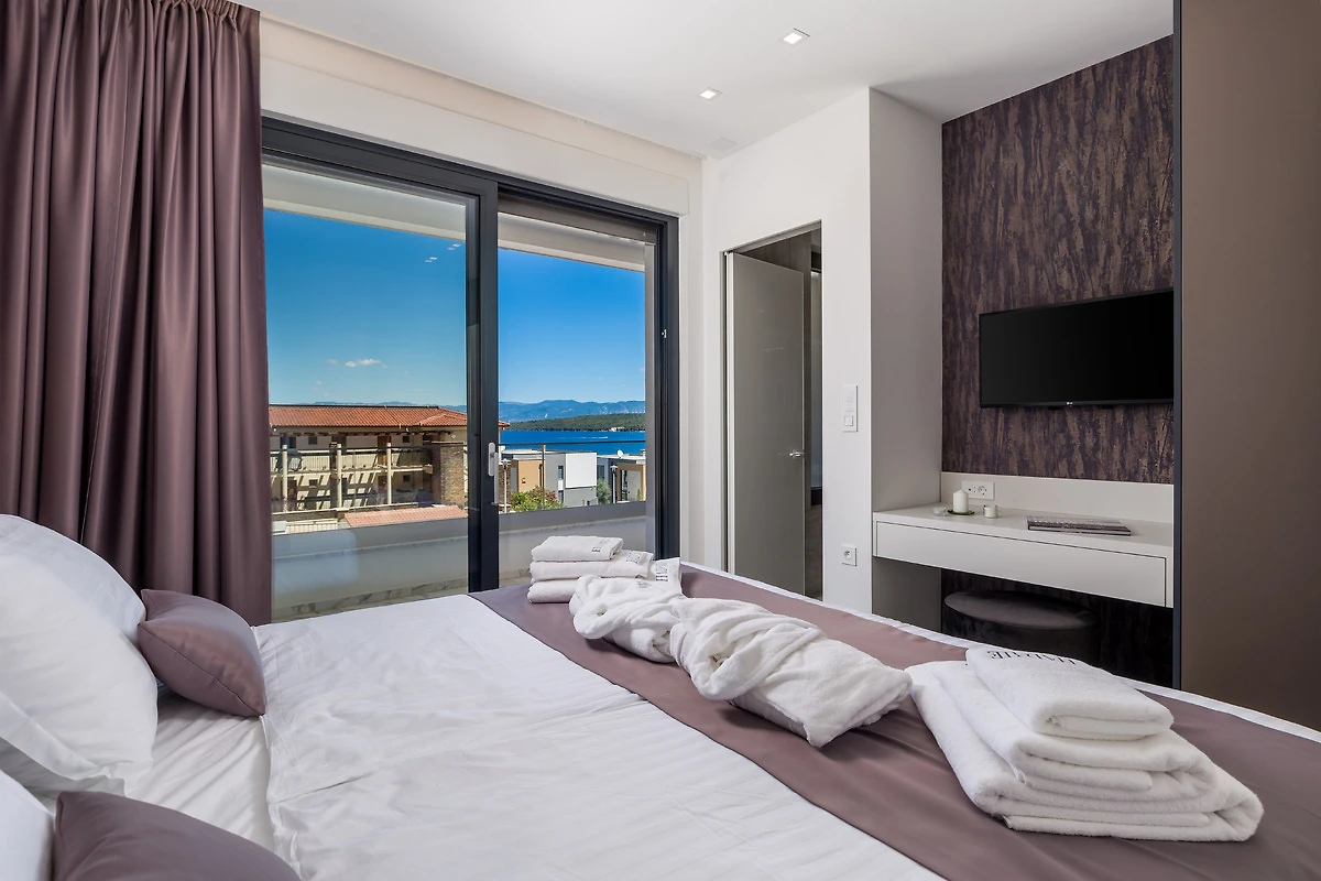 Willkommen in einem wunderschönen und eleganten Luxusapartment, in dem sich moderner, raffinierter Luxus perfekt mit einer ruhigen und entspannenden mediterranen Idylle verbindet. Dieses exklusive 5-Sterne-Ferienapartment befindet sich im Erdgeschoss einer sorgfältig gestalteten Villa und bietet ein erstklassiges Urlaubserlebnis auf der beliebten kroatischen Insel Krk.