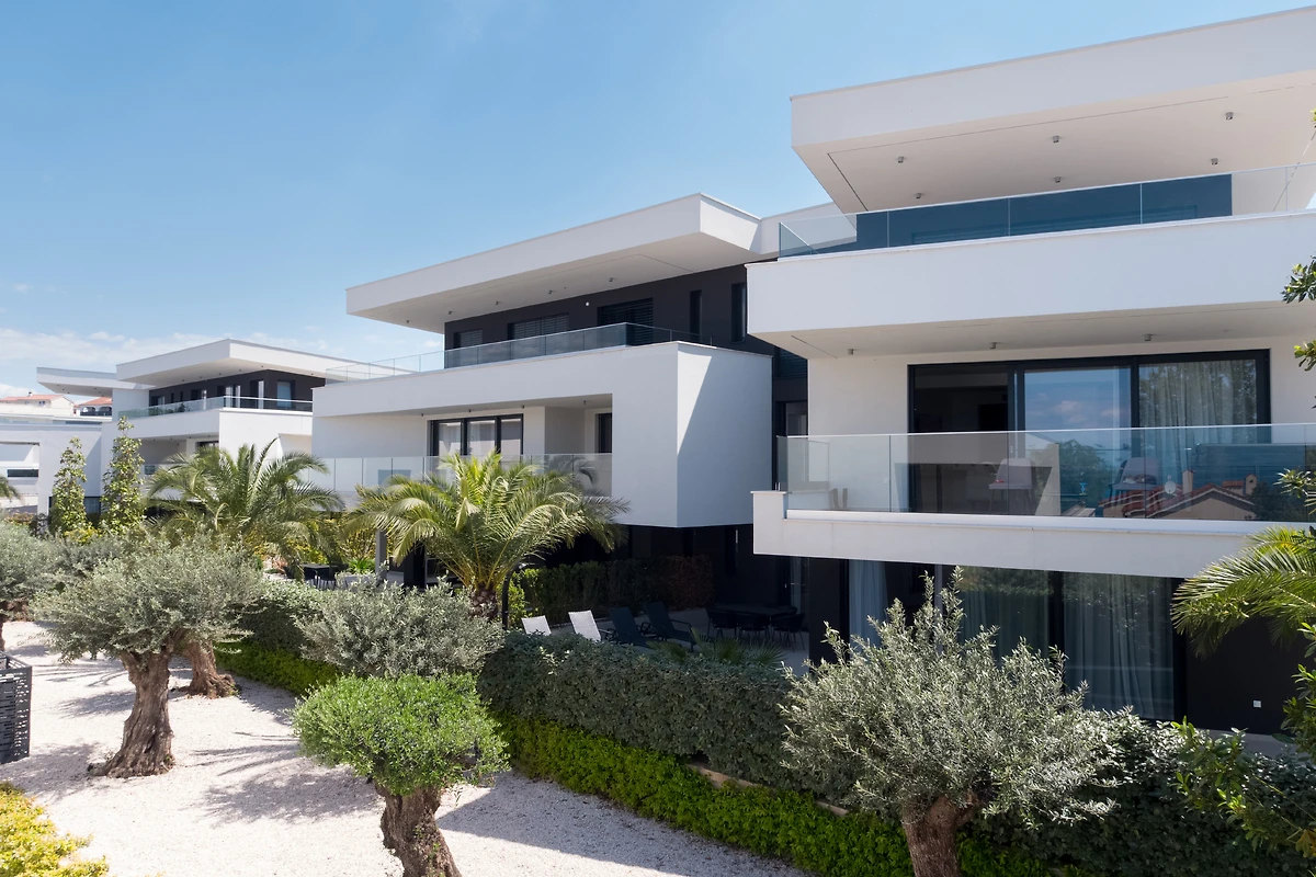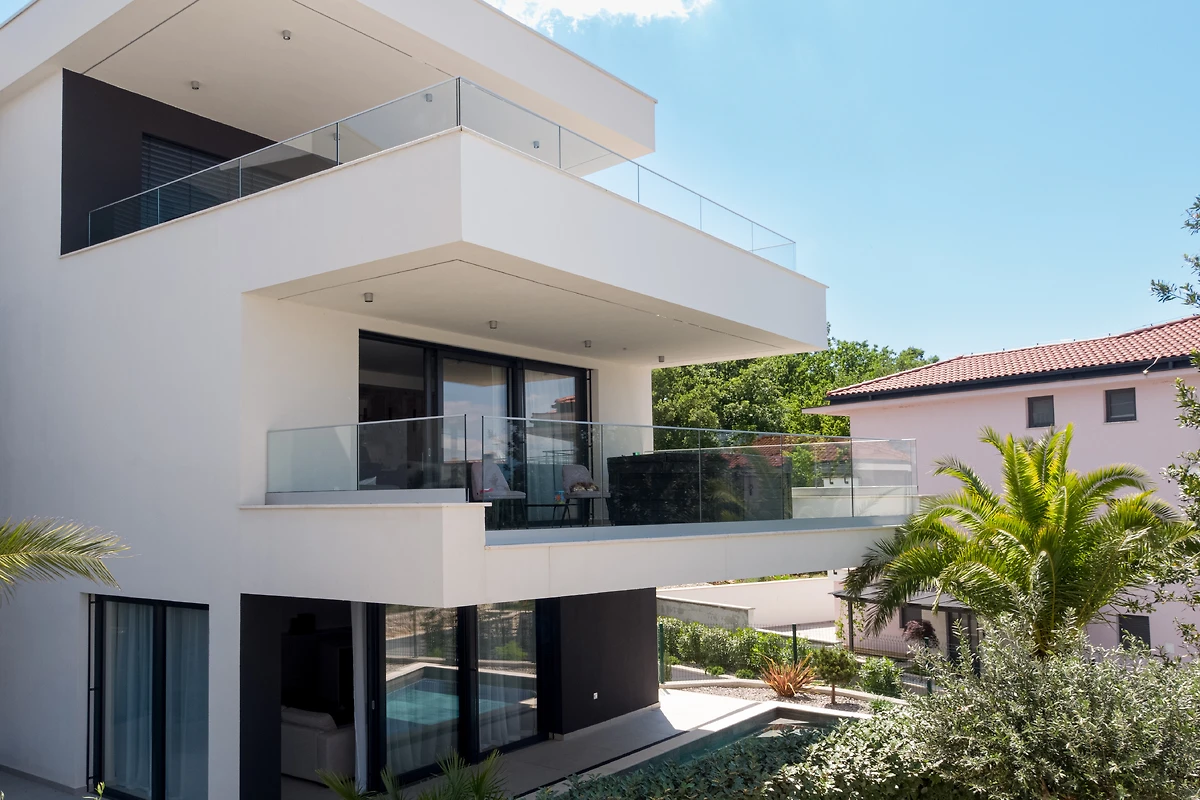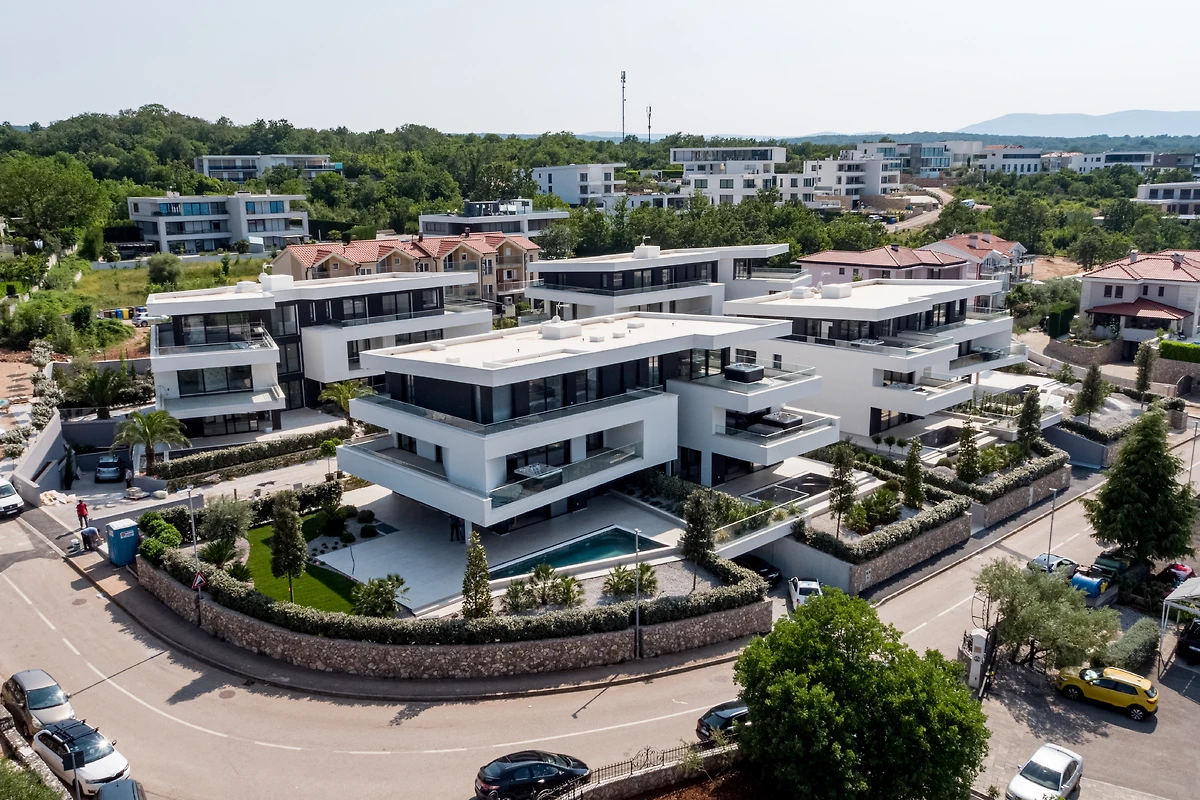 Die Ferienwohnung befindet sich in einem modernen Apartmentresort in Malinska, einer malerischen Stadt an der Westküste der Insel Krk, und bietet erstklassige Unterkünfte für bis zu 5 Personen. Die Luxuswohnung im ersten Stock vereint modernen Luxus, Komfort und eine einzigartige Lage, die einen Panoramablick auf die Adria, die umliegende Grünfläche und eine ruhige Straßenatmosphäre bietet. Die Terrasse mit Jacuzzi ist perfekt für den Morgenkaffee, zum Entspannen bei Sonnenuntergang oder für angenehme Momente völliger Ruhe.