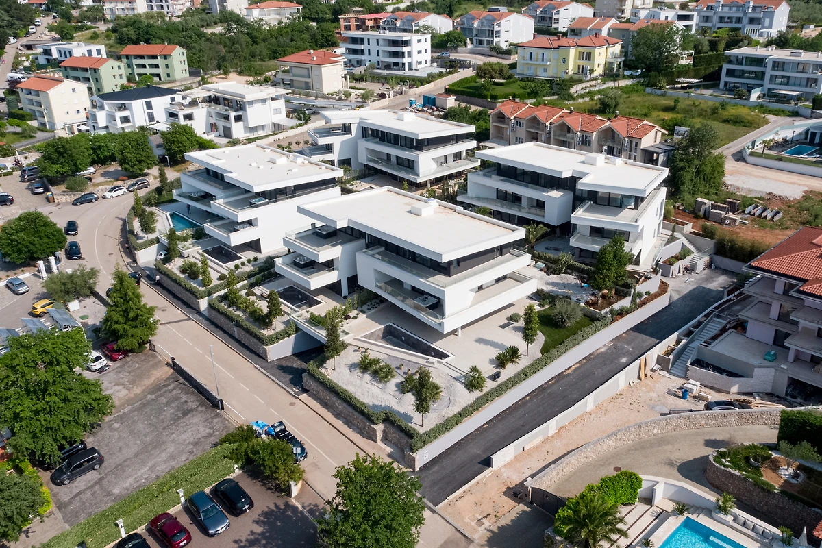 Dieses exklusive Penthouse befindet sich in einem modernen Apartment-Resort in Malinska, einem malerischen Ort an der Westküste der Insel Krk, und bietet erstklassige Unterkünfte für bis zu 7 Personen. Die Wohnung verbindet modernen Luxus, Komfort und eine einzigartige Lage mit Panoramablick auf die Adria, die grüne Umgebung und eine ruhige Straße.