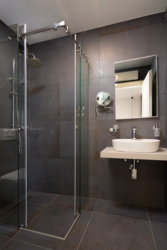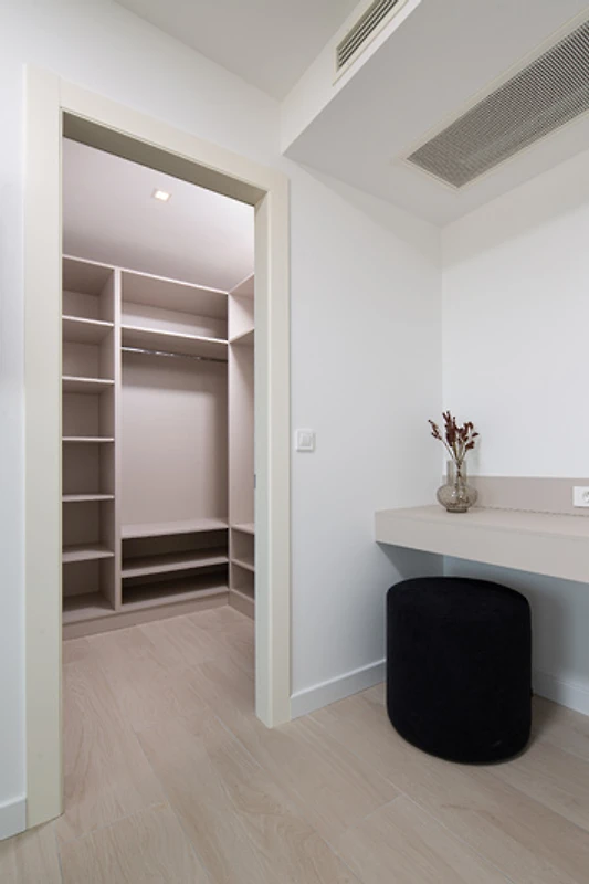 Die Wohnung verfügt über drei separate Schlafzimmer, jedes mit eigenem Bad, wobei eines der Bäder zusätzlich mit einer Badewanne ausgestattet ist. Außerdem steht ein zusätzliches separates WC zur Verfügung. Das gesamte Ambiente ist modern, hell und luftig gestaltet und verbindet Ästhetik und Funktionalität, wodurch ein Gefühl von heimischer Wärme entsteht.