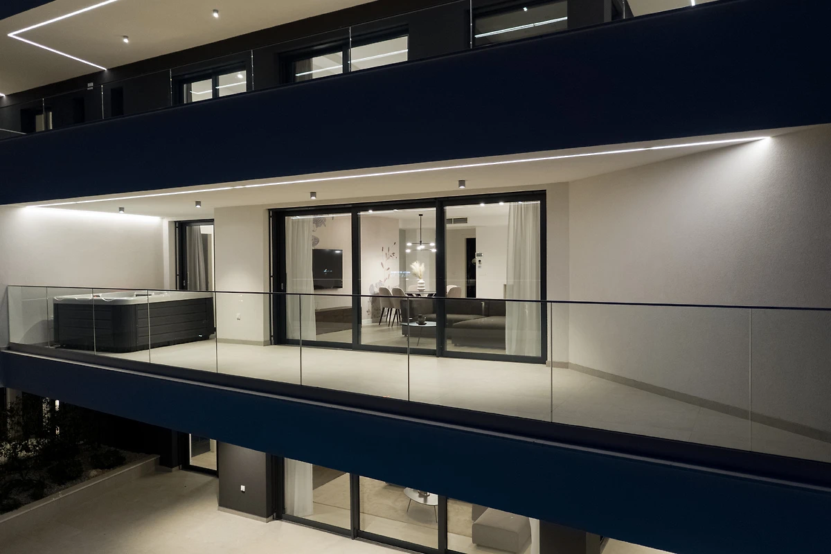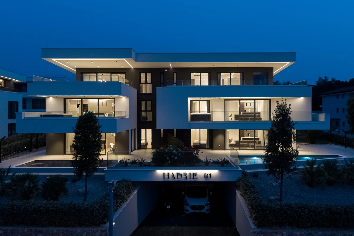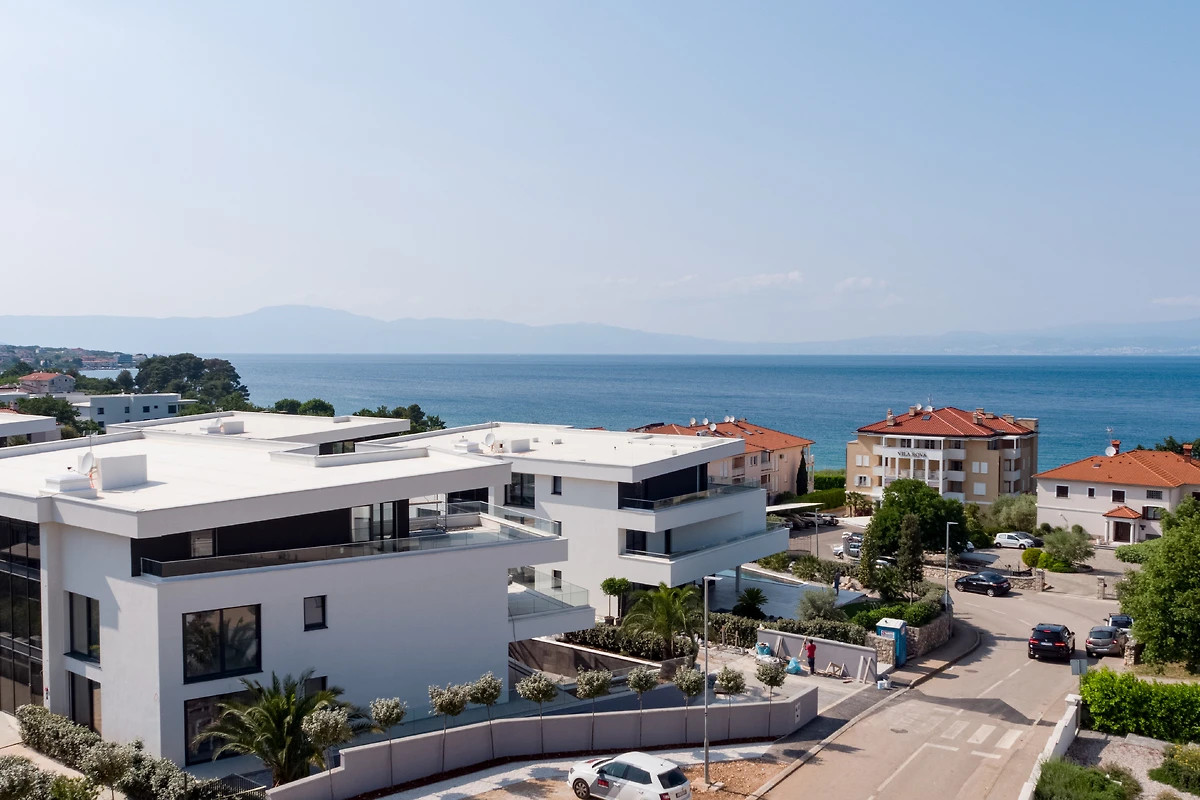 Das Premium-Apartment befindet sich in einem modernen Apartmentresort in Malinska, einem malerischen Ort an der Westküste der Insel Krk, und bietet erstklassige Unterkunft für bis zu sechs Personen. Das luxuriöse Apartment im ersten Stock vereint modernen Luxus, Komfort und eine einzigartige Lage, die panoramische Ausblicke auf die Adria, das umliegende Grün und eine ruhige Straßenatmosphäre ermöglicht. Die Terrasse mit Jacuzzi ist wie geschaffen für den Morgenkaffee, Entspannung bei Sonnenuntergang oder angenehme Momente vollkommener Ruhe.