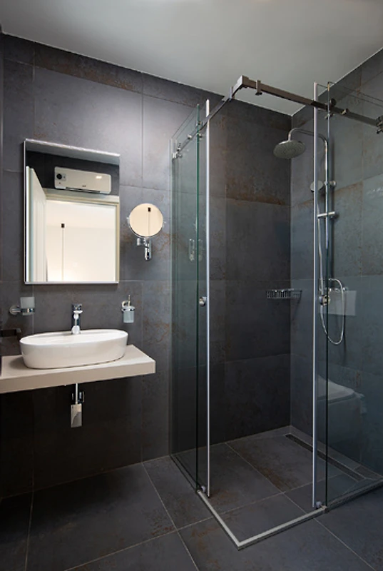 Das Apartment verfügt über drei Schlafzimmer, jedes mit eigenem Badezimmer. Zwei Schlafzimmer mit komfortablen Doppelbetten eignen sich für Paare oder Familien, ein Schlafzimmer mit Einzelbett ist ideal für Einzelpersonen oder ein Kind. Zusätzlich steht ein separates WC zur Verfügung, das den Gästen noch mehr Komfort und Privatsphäre bietet.