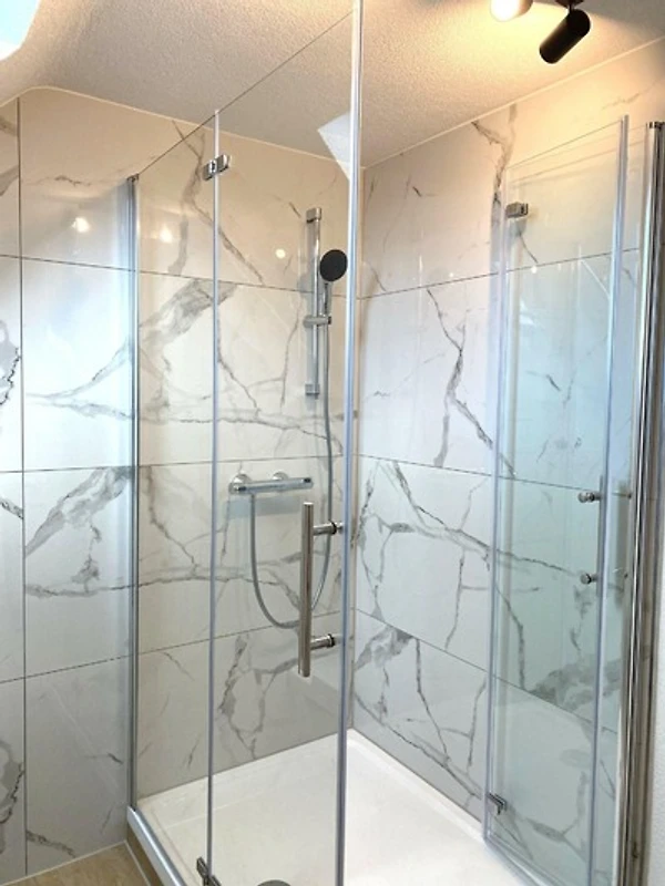 Das Badezimmer ist neu gestaltet, stilvoll und gepflegt. Freuen Sie sich auf eine grosszügige Dusche mit Glasabtrennung, moderne Armaturen und stimmungsvolle Beleuchtung.