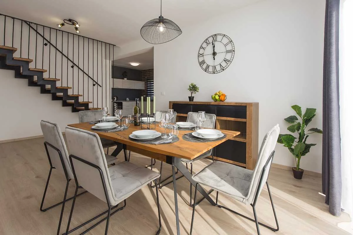 Für Ihren Komfort stehen Ihnen eine voll ausgestattete Küche mit Geschirrspüler, Mikrowelle, Wasserkocher und Kaffeemaschine zur Verfügung. Die stilvolle Einrichtung umfasst zudem einen gemütlichen Wohnbereich mit TV und kostenlosem Wifi, sodass Sie auch an ruhigeren Abenden bestens unterhalten sind. Bettwäsche ist selbstverständlich vorhanden und eine Waschmaschine erleichtert längere Aufenthalte.