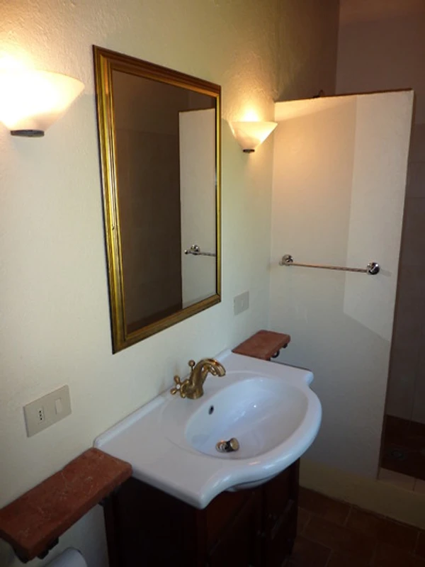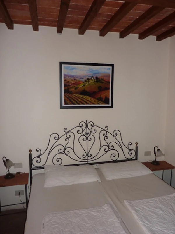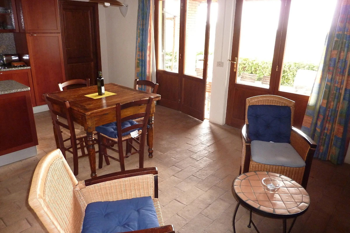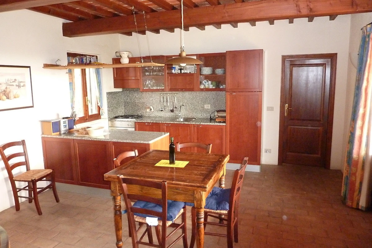 Das Haus verfügt über 2 separate Schlafzimmer, die sich links und rechts vom Wohnzimmer befinden. Jedes Schlafzimmer hat Zugang zu einem eigenen Bad mit Dusche/WC und Waschbecken. Im grosszügigen Wohnzimmer ist eine schöne Küche aus Kirschholz (mit Arbeitsplatte aus sardischem Granit) integriert mit anschliessendem Essplatz (antiker toskanischer Esstisch). Im Wohnbereich steht eine ausziehbare Schlafcouch (für weitere 2 Personen) sowie 2 Sessel. Flachbildschirm mit Sat TV (Astra) sowie WLAN vorhanden. Das Haus verfügt über eine Zentralheizung, so dass auch im Winter wohlige Wärme gewährleistet ist. Ausserdem sorgt ein Kaminofen mit grossem Sichtfenster für gemütliche Winterabende.