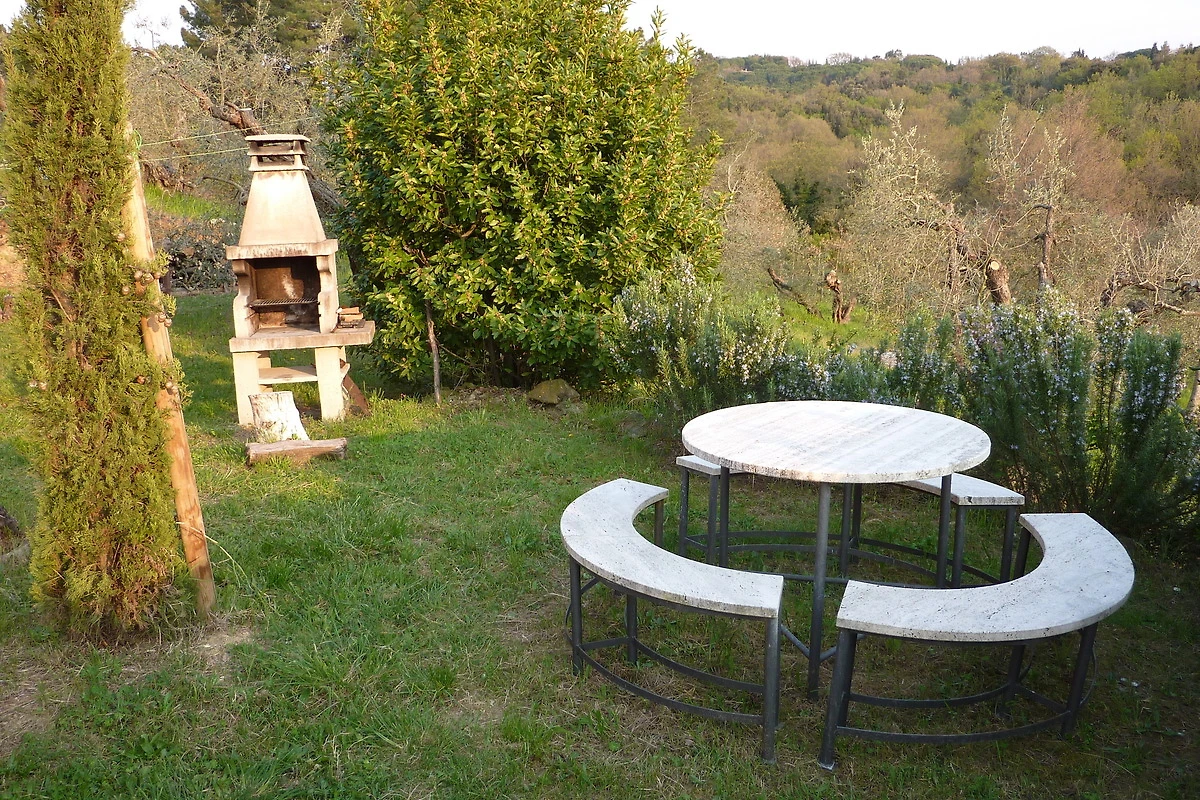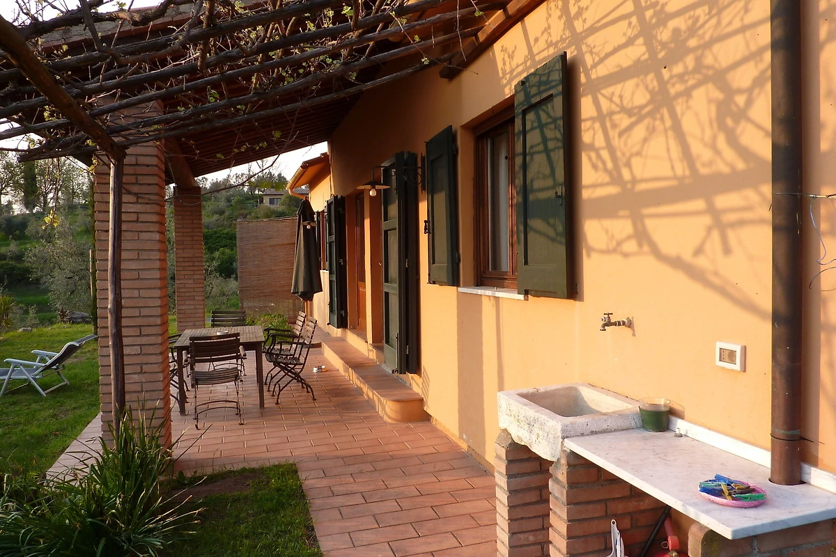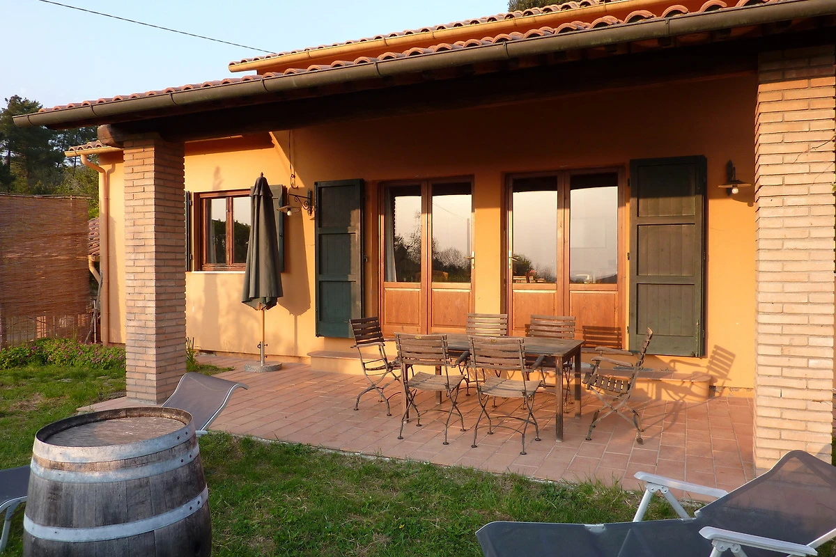 Die Terrasse wurde mit einem Kastanienholz-Dachstuhl mit alten Mezzane gedeckt. Von dieser Terrasse aus hat man einen herrlichen Blick aufs Meer sowie die Inseln Capraia und Korsika (bei klarer Sicht), und kann die Sonnenuntergänge geniessen.