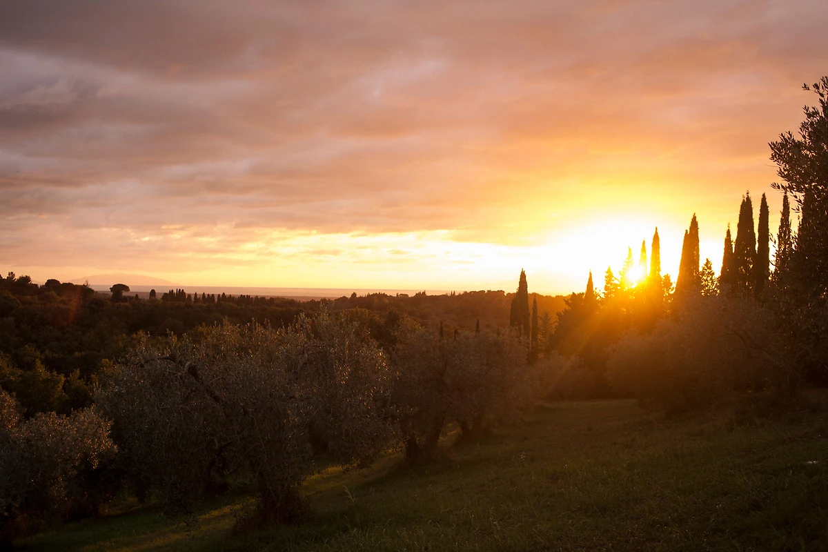 Die mit Zypressen gesäumte Zufahrt bringt Sie in einen Bereich der absoluten Ruhe.