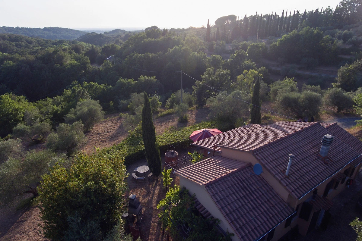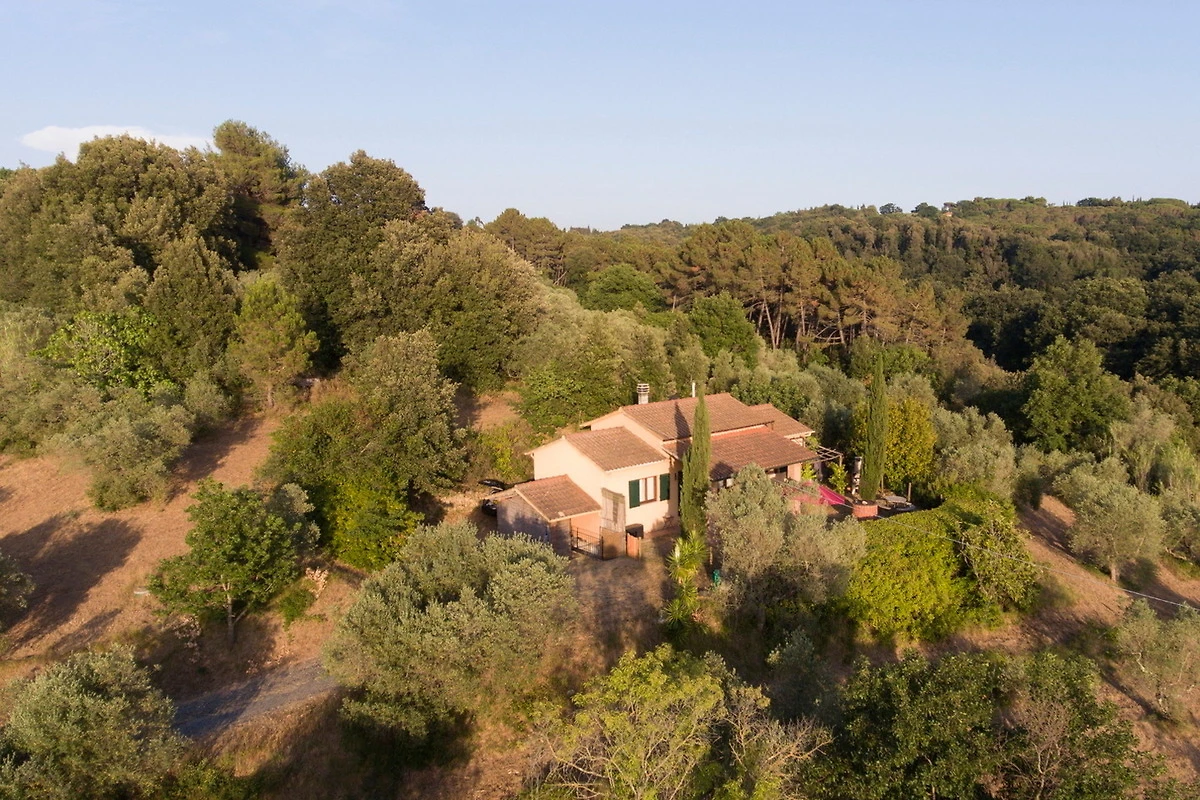 Bei Guardistallo. Entfernungen: Cecina 7 km, Bolgheri mit der schönsten Zypressenalle Italiens 10 km, Volterra 30 km, Pisa 45 km, Lucca 55 km, San Gimignano 55 km, Siena 80 km, Florenz 100 km.