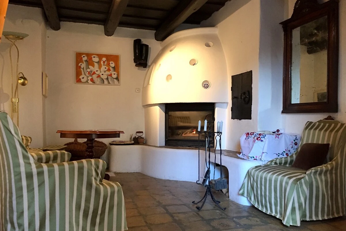Dieses charmante Haus bietet auf 120 m² viel Platz für bis zu 10 Gäste und vereint traditionellen Reiz (200 Jahre alt, denkmalgeschützt) mit modernem Komfort (umfangreich saniert). Drei Schlafzimmer, zwei Badezimmer und separates WC sorgen für Privatsphäre und Bequemlichkeit, während eine voll ausgestattete Küche mit Spülmaschine, Herd, Backofen, Mikrowelle, Wasserkocher, Kaffeemaschine viel Geschirr, Töpfe, Gläser und vieles mehr das Kochen zum Vergnügen macht. Im offenen Wohnbereich lädt ein Kamin zu entspannten Abenden ein, während die Klimaanlage an heißen Sommertagen für angenehme Temperaturen sorgt.