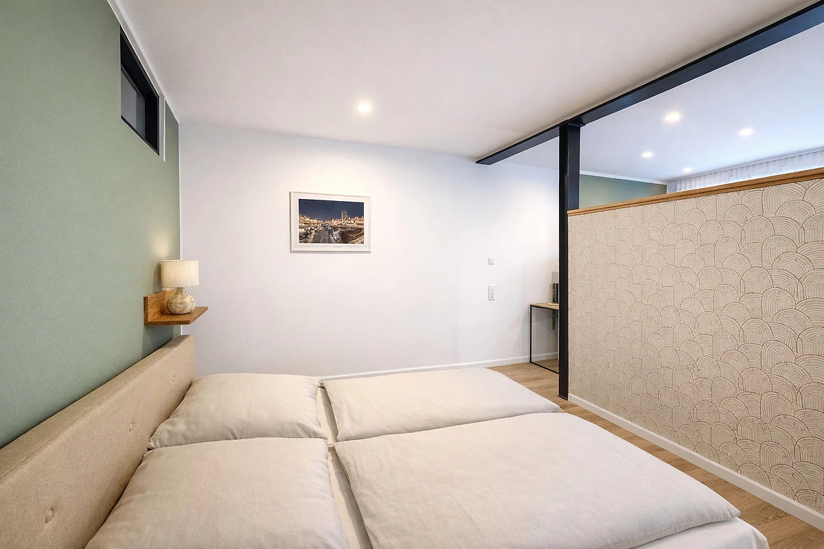 Das Schlafzimmer bietet Ihnen einen ruhigen Rückzugsort für erholsame Nächte. Hochwertige Matratzen und weiche Kissen sorgen für einen tiefen, erholsamen Schlaf - damit Sie am nächsten Morgen voller Energie in einen neuen Urlaubstag starten.