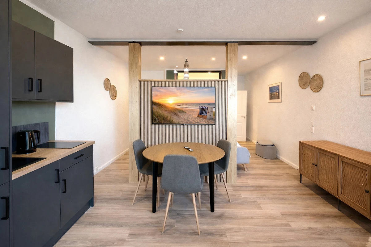 Hier beginnt Ihr Urlaub schon beim Eintreten: Die liebevoll eingerichtete Wohnung vereint modernes Design mit norddeutscher Gemütlichkeit und schafft eine Atmosphäre, in der Sie sich sofort zuhause fühlen. Helle Räume, hochwertige Ausstattung und durchdachte Details sorgen dafür, dass Sie sich um nichts kümmern müssen - ausser um Ihre Erholung.