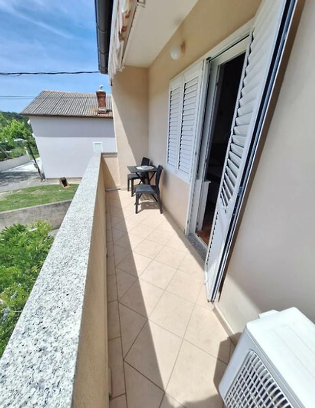 Die Wohnung verfügt über einen privaten Balkon mit einem wunderschönen Meerblick, perfekt für entspannte Morgen oder warme Abende an der Küste. Die Gäste haben ausserdem Zugang zu einem gemeinsamen Waschraum mit Waschmaschine, Trockner und Bügeleisen, was zusätzliche Bequemlichkeit während Ihres Aufenthalts bietet.