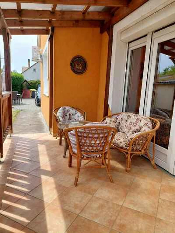 Balatonszentgyörgy, 100 mNN. Das Ferienhaus befindet sich auf einem 700 qm grossen, geschlossenen Gartengrundstück mit Wiese, von einem Zaun und einer Hecke begrenzt. Der Vermieter wohnt nicht im Haus oder auf dem Grundstück. Die Zufahrt erfolgt über eine Nebenstrasse (asphaltiert, Länge 5 m). Parkplatz (für 3 Pkws) auf dem Grundstück. Freigelände.