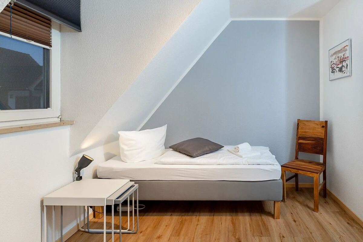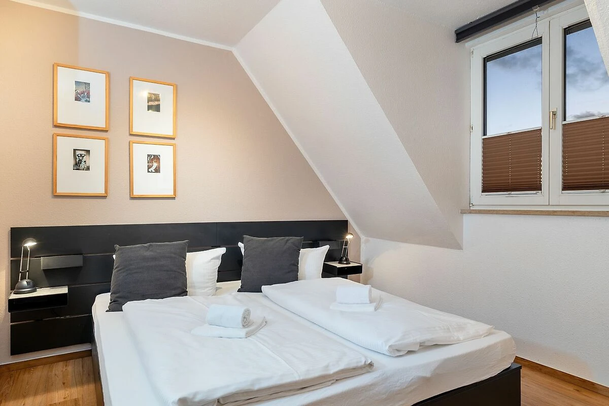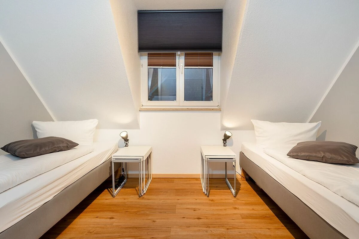 Zwei einladende Schlafzimmer eines mit Doppelbett, eines mit zwei Einzelbetten sorgen für erholsame Nächte und bieten ausreichend Platz für bis zu vier Personen.