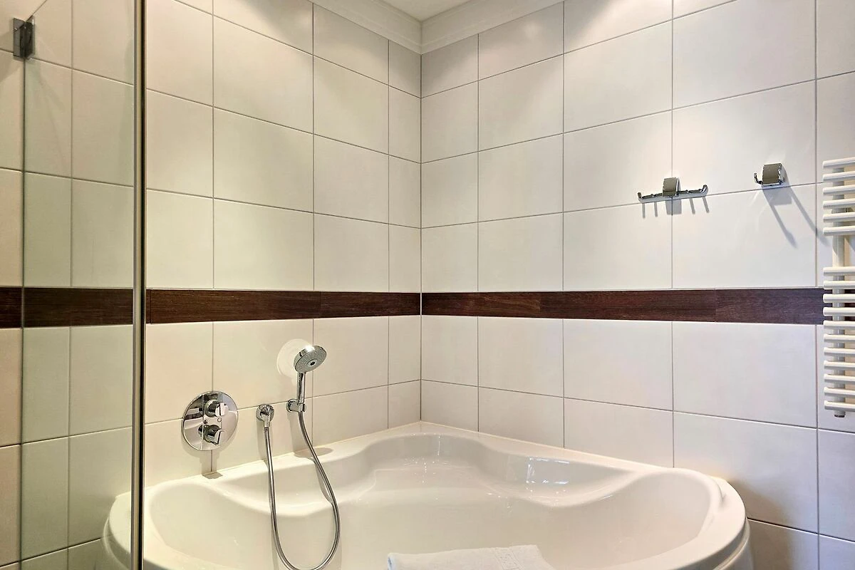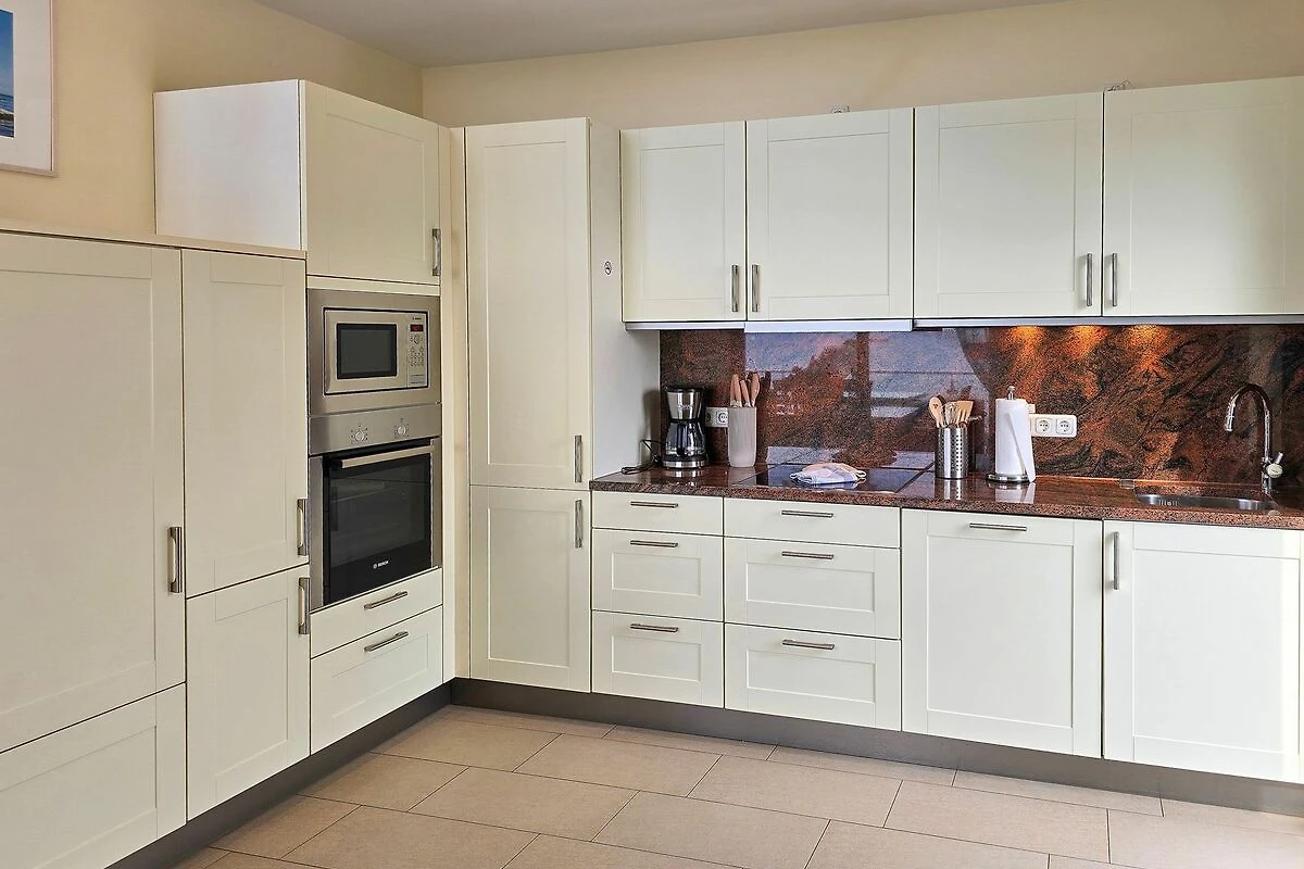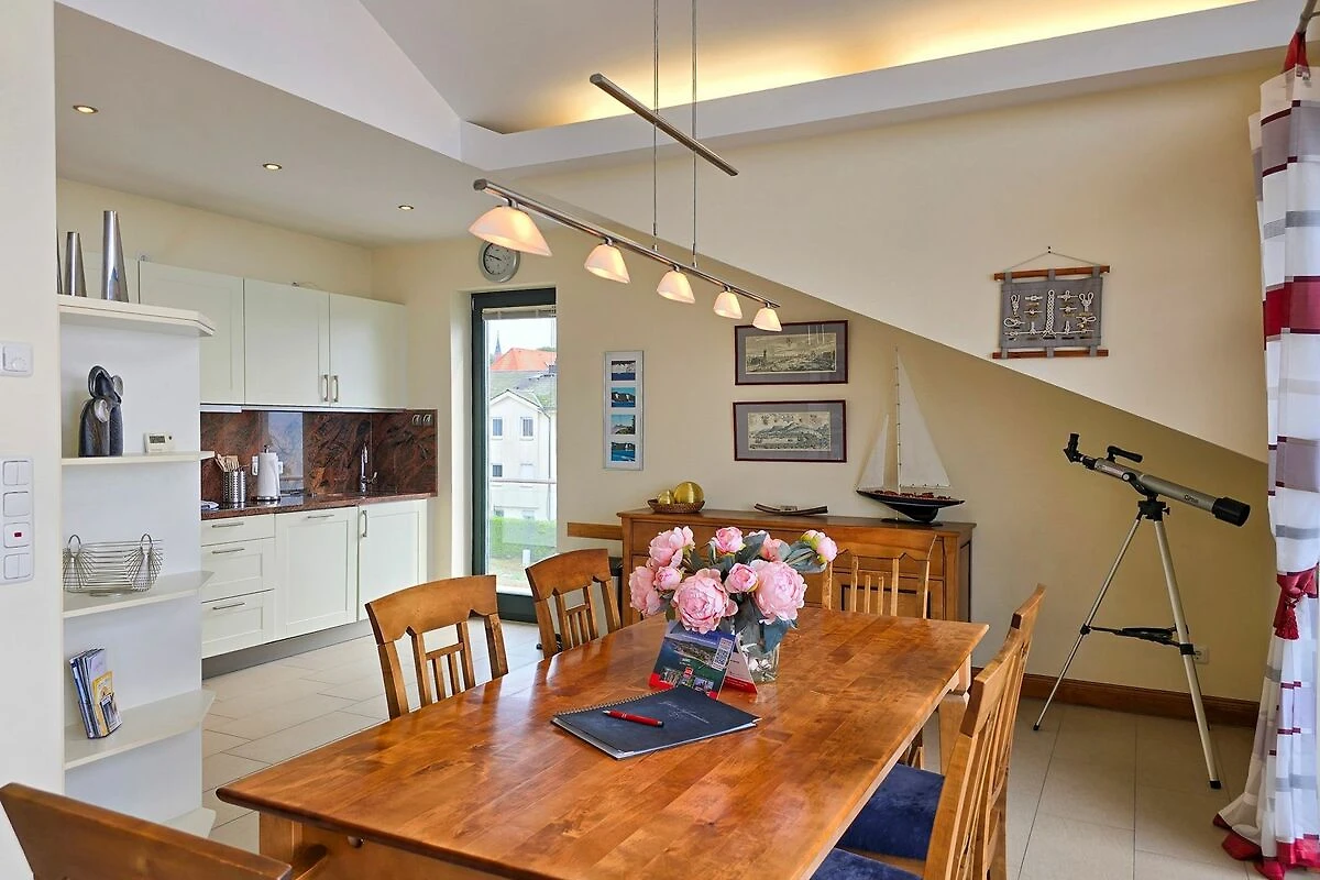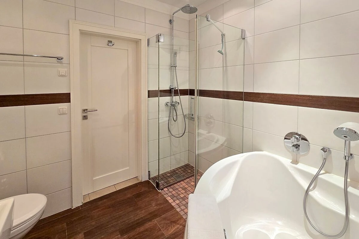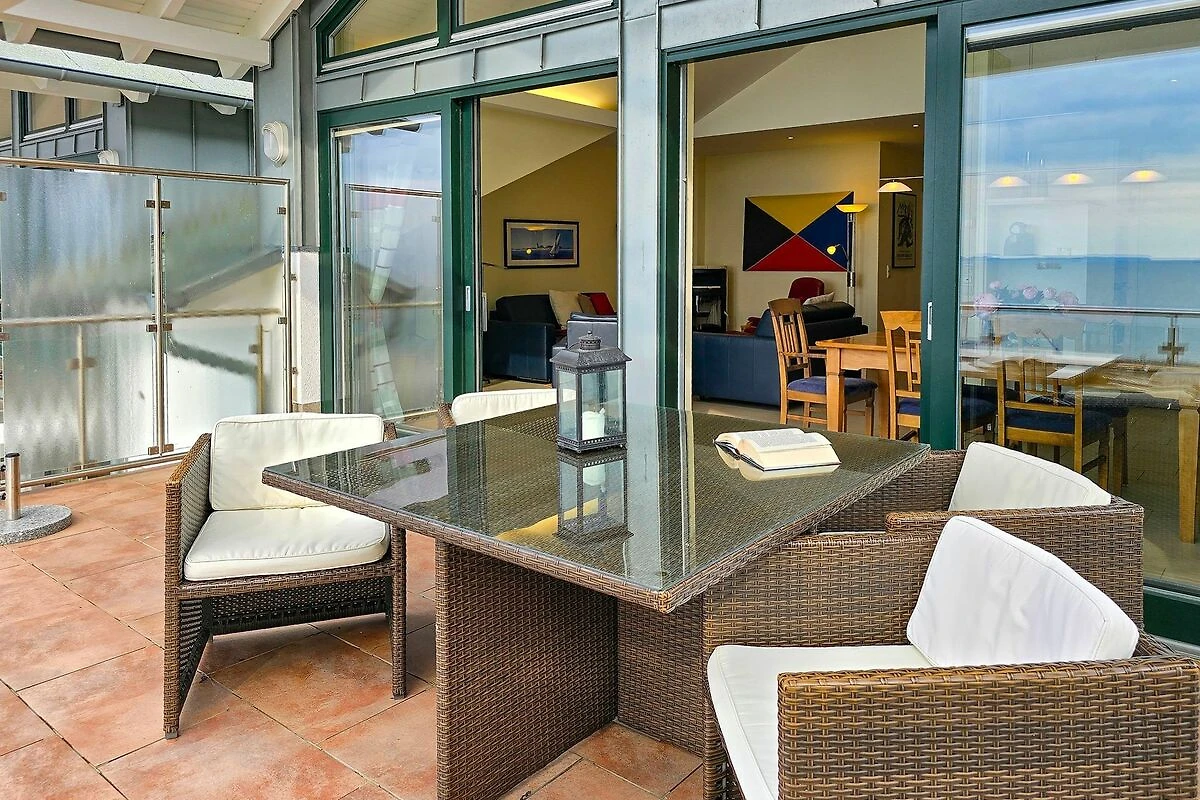 Das Penthouse-Appartement Lenea in der Villa Friede-Marie hat eine Grösse von 106 m² und bietet Platz für 4 Personen. Das modern und gemütlich ausgestattete Appartement verfügt über 2 separate Schlafzimmer mit jeweils einem Doppelbett und einem grosszügigen Wohnraum. Die gemütliche Sitzecke und ein Kamin laden zum Relaxen ein. Der Essplatz und die integrierte Küche, die ebenso den gehobenen Ansprüchen genügt, wie die gesamte Einrichtung und Lage des Appartements, lassen keine Wünsche offen. Im grösseren Bad befinden sich Badewanne, Dusche, Waschtisch und Toilette. Daneben befindet sich ein zusätzliches WC. Des weiteren gibt es eine eigene Sauna sowie Waschmaschine und Trockner im Appartement. Vom Wohnzimmer aus gelangen Sie auf den grosszügigen Balkon, auf dem sich hochwertige Sonnen- und Sitzmöbel befinden. Der freie, herrliche Ostseeblick, die Sicht auf den Stadthafen und der Binzer Bucht komplettieren das luxuriöse Angebot. Ein PKW-Stellplatz sowie eine Unterstellmöglichkeit für Ihr Fahrrad oder dergleichen stehen Ihnen vor dem Haus zur Verfügung.