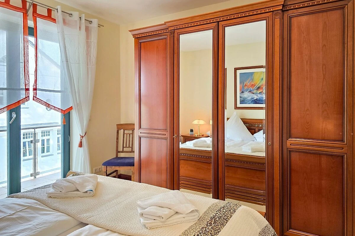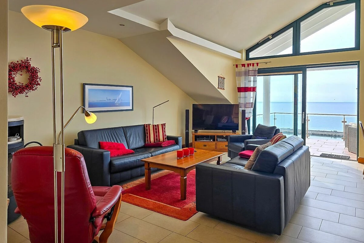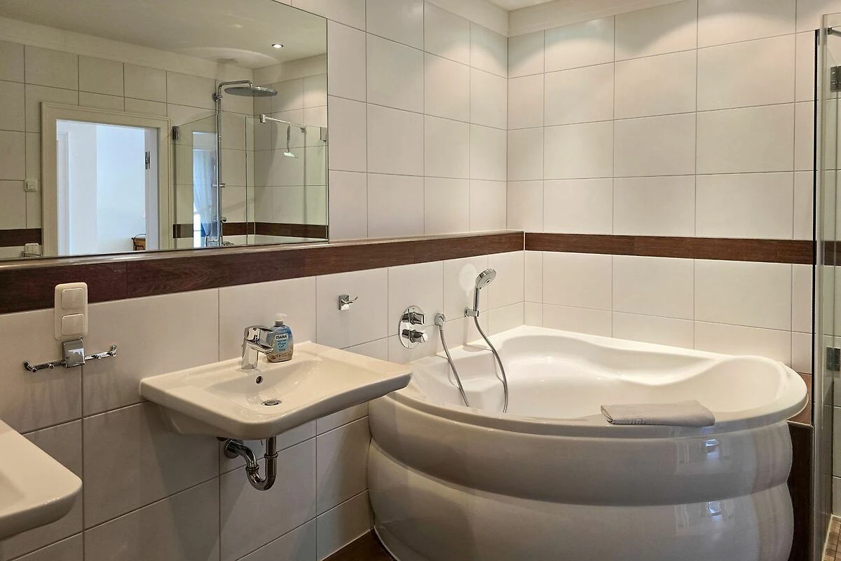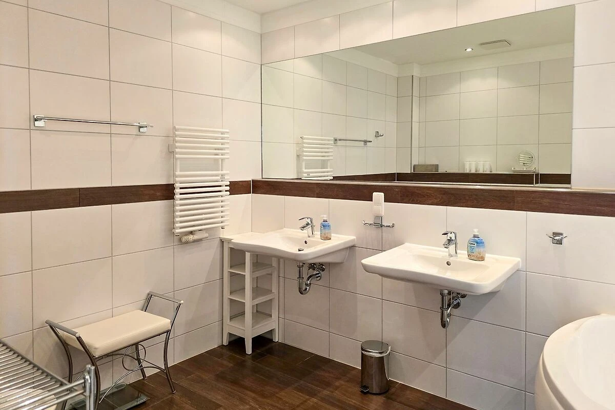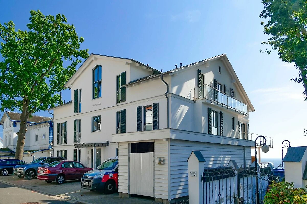 Das Penthouse-Appartement Sophie in der Villa Friede-Marie hat eine Grösse von 112 m² und bietet Platz für 4 Personen. Das modern und gemütlich ausgestattete Appartement verfügt über 2 separate Schlafzimmer mit jeweils einem Doppelbett und einem grosszügigen Wohnraum. Die gemütliche Sitzecke und ein Kamin laden zum Relaxen ein. Der Essplatz und die integrierte Küche, die ebenso den gehobenen Ansprüchen genügt, wie die gesamte Einrichtung und Lage des Appartements, lassen keine Wünsche offen. Im grösseren Bad befinden sich Badewanne, Dusche, 2 Waschtische, Bidet und Toilette, das zweite Bad ist mit einer Dusche und WC ausgestattet. Des weiteren gibt es eine eigene Sauna sowie Waschmaschine und Trockner im Appartement. Vom Wohnzimmer aus gelangen Sie auf den grosszügigen Balkon, auf dem sich hochwertige Sonnen- und Sitzmöbel befinden. Der freie, herrliche Ostseeblick, die Sicht auf den Stadthafen und der Binzer Bucht komplettieren das luxuriöse Angebot. Ein PKW-Stellplatz sowie eine Unterstellmöglichkeit für Ihr Fahrrad oder dergleichen stehen Ihnen vor dem Haus zur Verfügung.