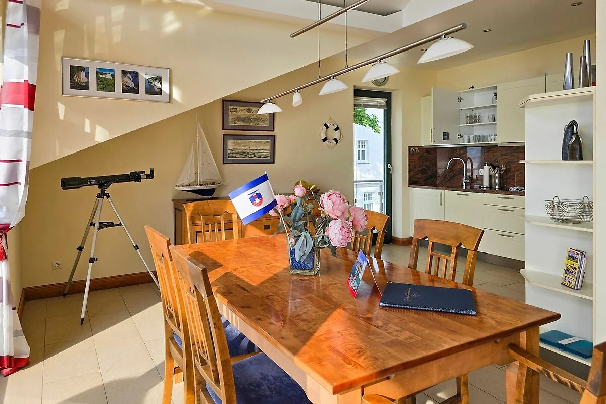 Die Ferienwohnung liegt in ruhiger und doch zentraler Lage in unmittelbarer Nähe der romantischen Altstadt von Sassnitz. Von der Wohnung aus haben Sie direkten Ausblick über die gesamte Binzer Bucht bis nach Binz, Sellin und Göhren. Der Nationalpark Jasmund ist mit seiner Kreideküste, dem Königsstuhl und den markanten Buchenwäldern fussläufig zu erreichen und bietet Ihnen einen erlebnisreichen und erholsamen Urlaub. Die wunderschönen Sandstrände an der Schaabe bzw. bei Binz / Prora sind nur wenige Autominuten von Ihrer Ferienwohnung entfernt.