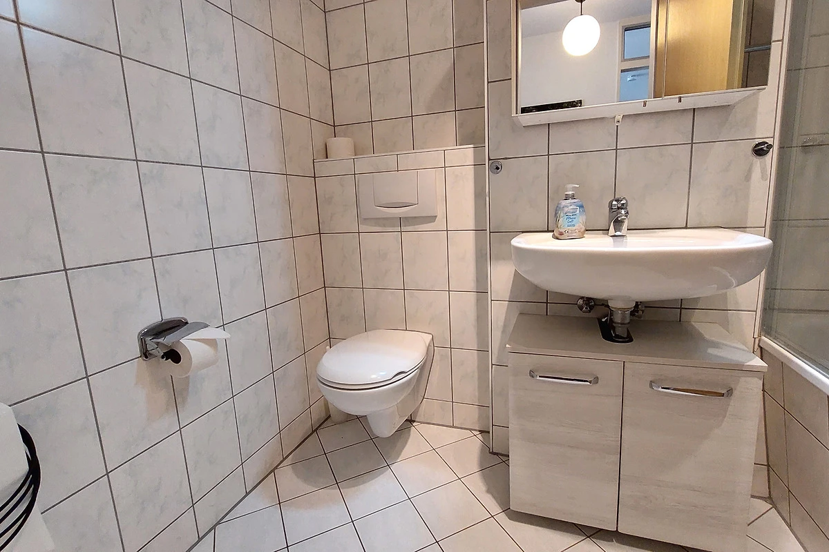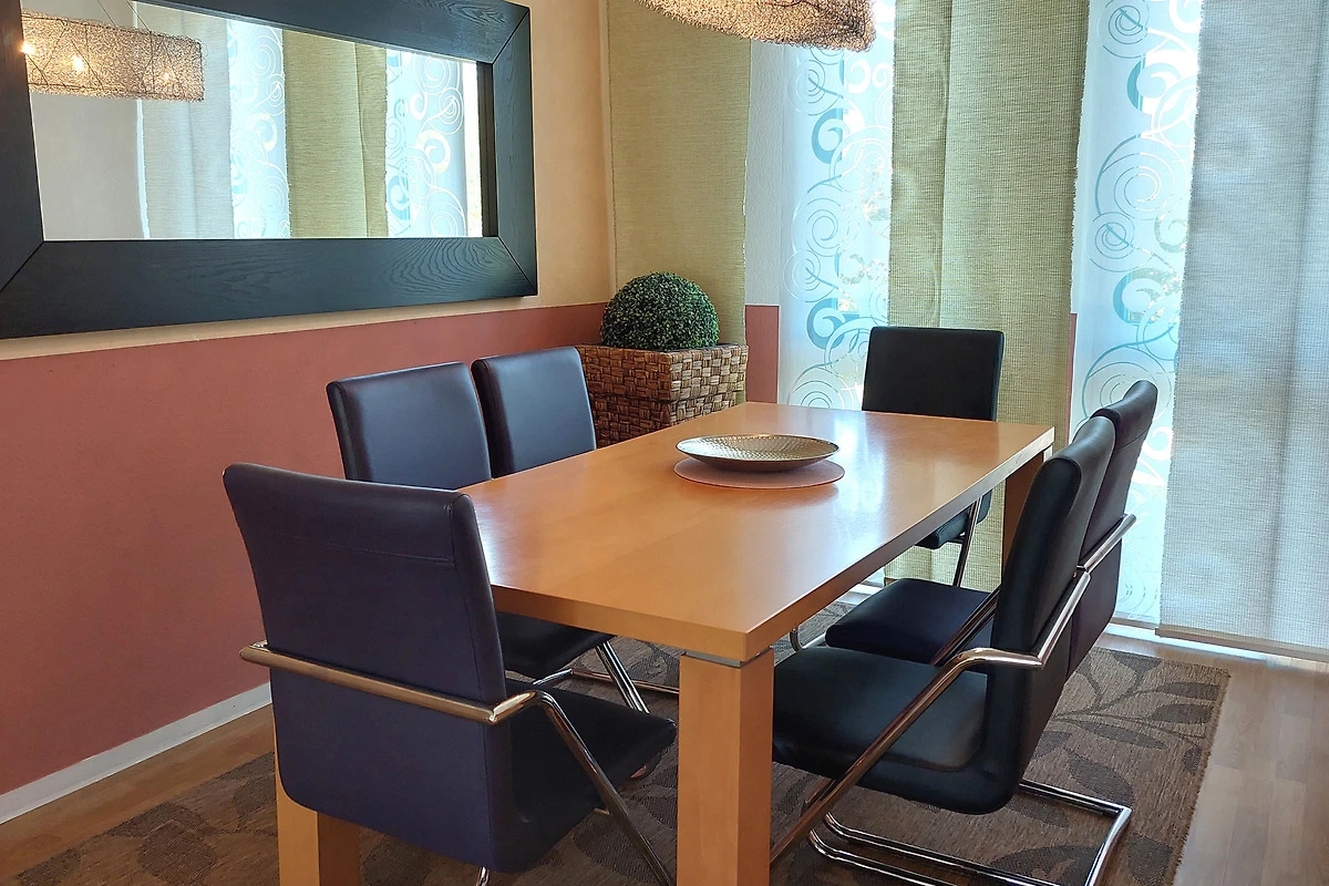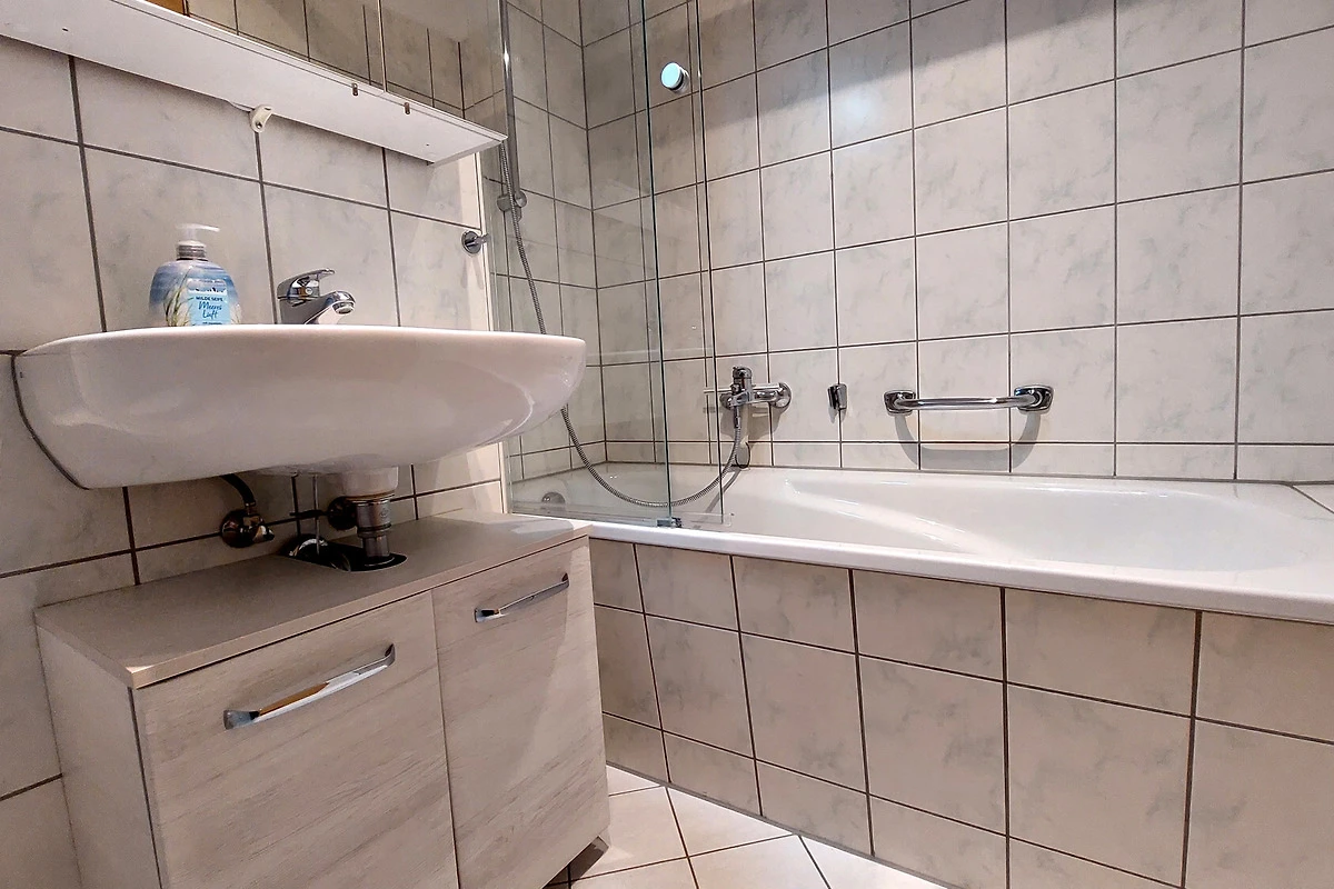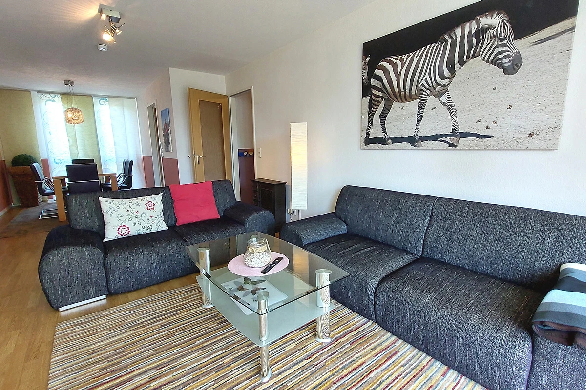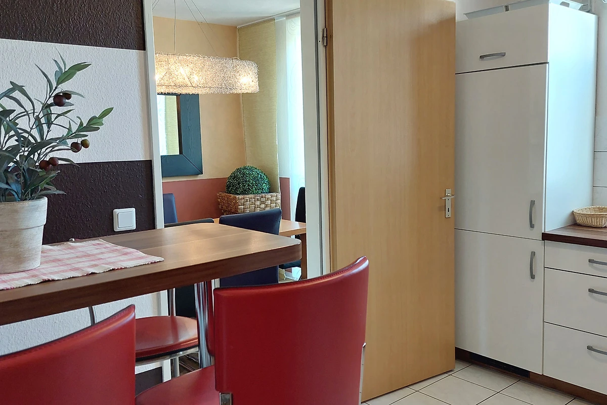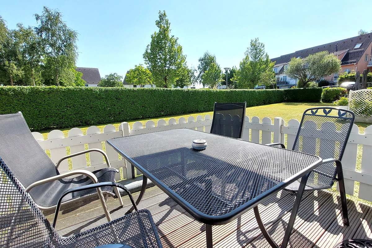 Die Wohnung verfügt über einen separaten Eingang von dem Sie in den vorgelagerten Flur gelangen. Im Wohnbereich mit angrenzendem Essbereich erwartet Sie eine gemütliche Sitzgruppe und gelangen von hier auf die möblierte Terrasse. Die technische Einrichtung umfasst einen Flachbildfernseher, DVD-Player, Musikanlage sowie einen kostenfreien W-LAN-Zugang. Im separaten Küchenbereich finden Sie eine komplette Küchenzeile mit zusätzlicher Sitzmöglichkeit sowie Backofen, Cerankochfeld, Mikrowelle, Geschirrspüler, Kaffeemaschine, Wasserkocher, Toaster und weitere Küchenhelfer vor. Das Hauptschlafzimmer verfügt über ein Doppelbett mit hochwertigen Matratzen sowie über einen Kleiderschrank. Im zweiten Schlafbereich finden Sie zwei Einzelbetten sowie eine kombinierte Anbauwand mit Kleiderschrank vor. Für die kleinen Gäste stehen ein Kinderreisebett mit Extra-Kindermatratze, ein mobiler Wickeltisch, eine Baby-Badewanne, Kindertritt für das Waschbecken sowie 2 Marken-Kinderhochstühle bereit. Das Bad ist ausgestattet mit einer Badewanne, Waschbecken [&] WC. Zusätzlich bietet Ihnen diese Wohnung eine Münzwaschmaschine. Ein Pkw-Stellplatz befindet sich am Haus. Ihre Fahrräder können Sie in dafür vorgesehene Räume direkt am Haus unterstellen.