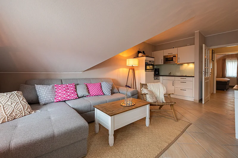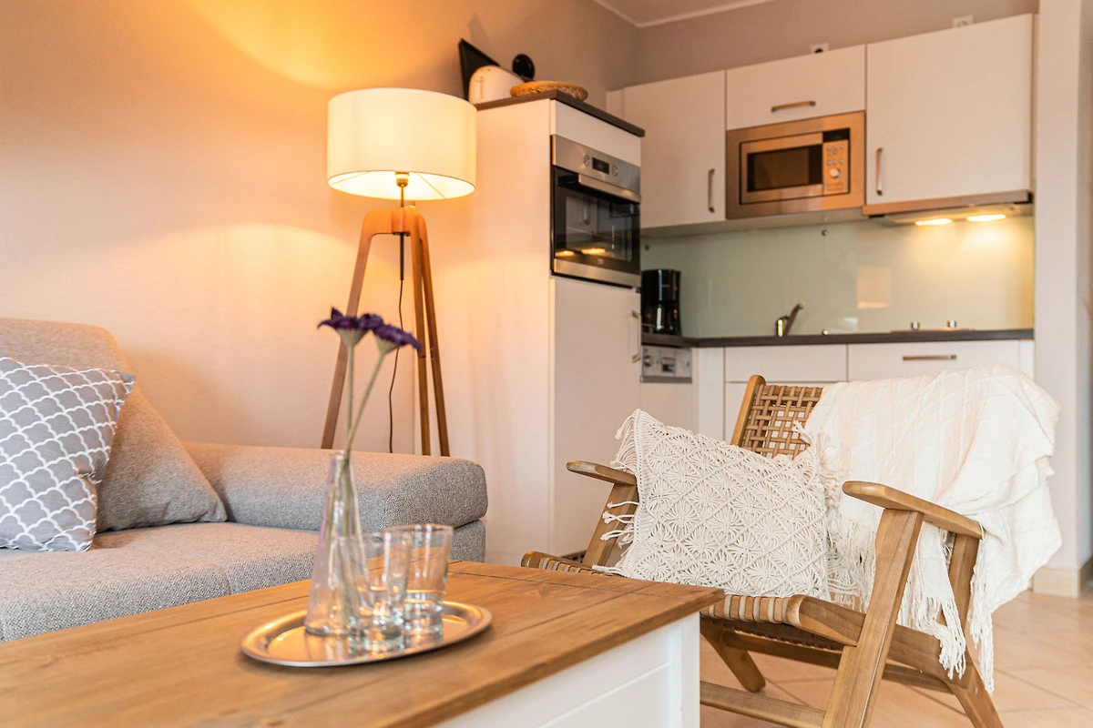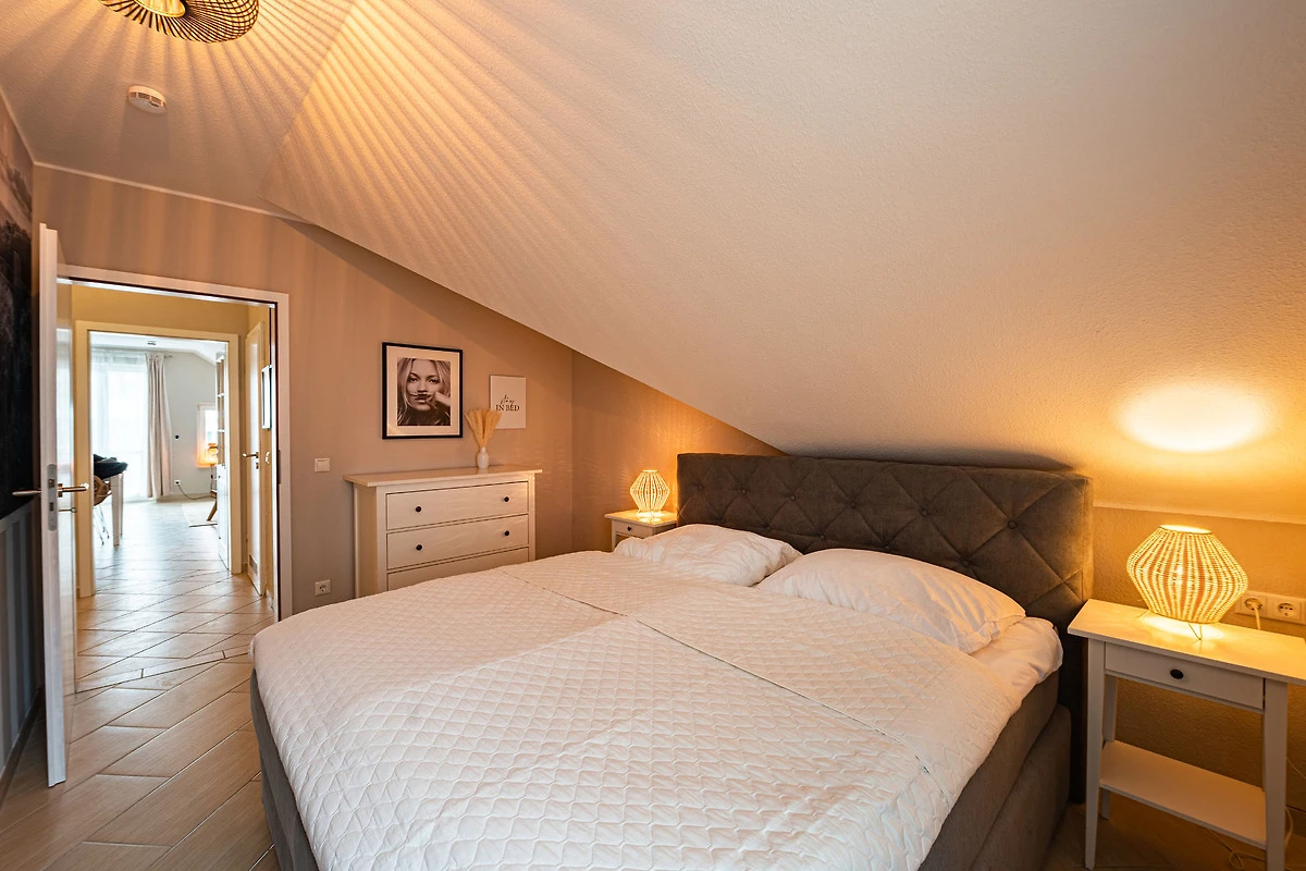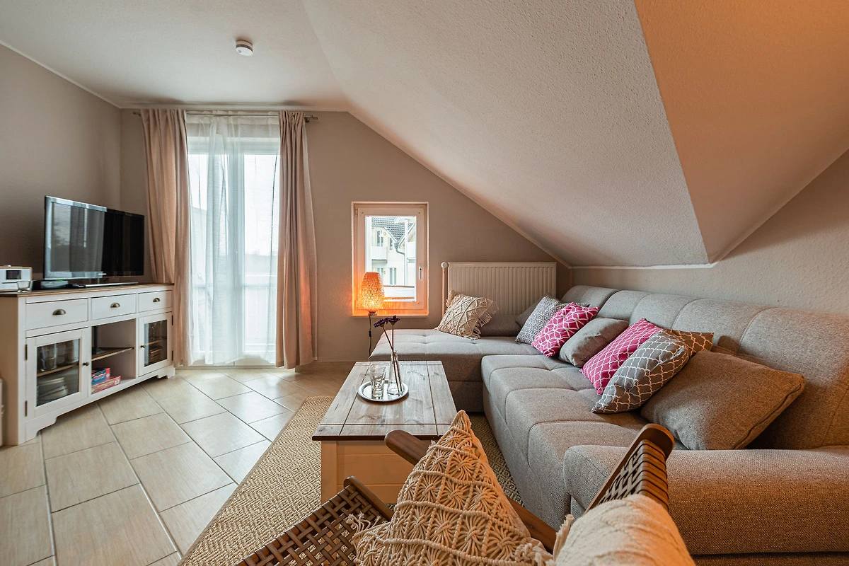 Ihre modern eingerichtete 2-Zimmer-Nichtraucherwohnung Seeblick 47RB34 A hat eine Grösse ca. 44 qm. Sie ist für bis zu 3 Personen eingerichtet und befindet sich im Dachgeschoss des Hauses. Vom Balkon, in Richtung Westen gelegen, geniessen Sie abseits vom Strassenverkehr einen weiten Blick bis hin zum Schmachter See. Die Wohnung teilt sich auf in einen Flur mit Garderobe, einen grosszügigen Wohnraum mit Essbereich und integrierter Küchenzeile, ein Badezimmer sowie ein Schlafzimmer. Im Wohnraum finden Sie neben der Wohnlandschaft mit Schlafsofa noch einen separaten Esstisch mit 4 Stühlen. Die Küchenzeile ist komplett ausgestattet mit 2-Platten-Kocheld, Backofen, Geschirrspüller, Mikrowelle, Kühlschrank mit Gefrierfach, Kaffeemaschine, Wasserkocher und Toaster. Ein Fernseher mit Kabelanschluss sowie DVD-Player gehören mit zur Ausstattung sowie für die ruhigeren Stunden eine Brettspielesammlung. Der behagliche Schlafraum ist mit einem Boxspringbett und einer Kommode ausgestattet. Im Badezimmer finden Sie einen Waschtisch, Dusche und WC. Ihr Vierbeiner ist hier herzlich willkommen!