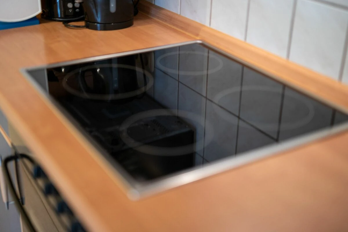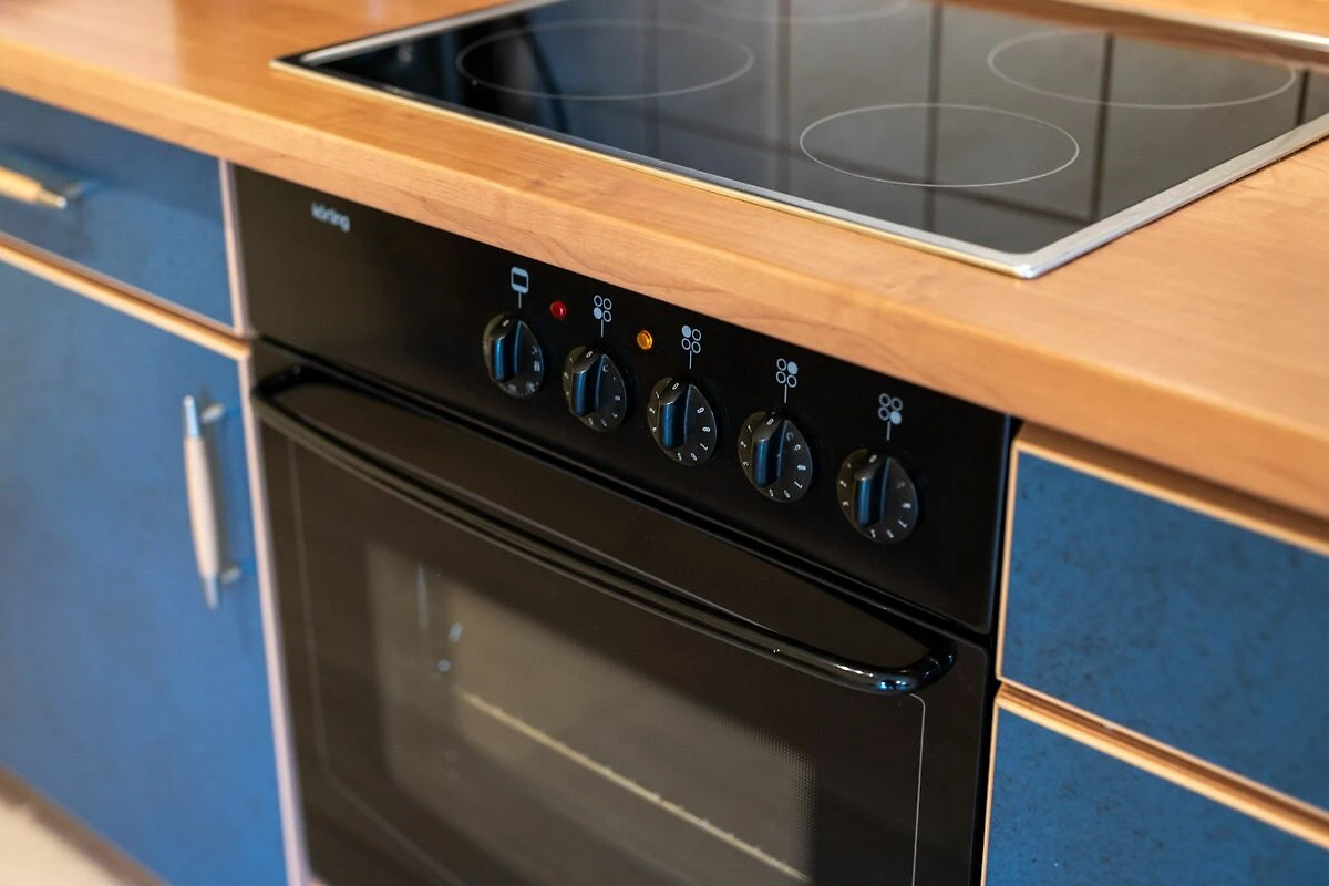 Die offene Küche ist direkt zum Wohnzimmer hin gestaltet und umfassend ausgestattet. Ihnen stehen unter anderem ein Cerankochfeld, Backofen, Mikrowelle, Spülmaschine, Kühlschrank mit Gefrierfach, Wasserkocher, Toaster, Kaffeemaschine sowie eine Kaffee- und Teemaschine zur Verfügung. Küchenutensilien, Geschirr und Besteck sind ebenso vorhanden wie Reinigungsmittel und eine Erstausstattung, sodass Sie Ihren Aufenthalt unkompliziert beginnen können.