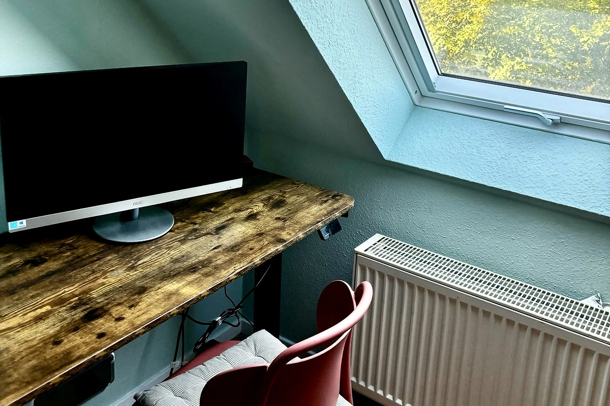 Falls doch einmal Homeoffice ansteht, bietet die Wohnung neben schnellem WLAN auch einem modernen und höhenverstellbaren Schreibtisch, welcher mit Monitor (HDMI-Anschluss) und vielen Steckdosen "Workation" problemlos möglich.