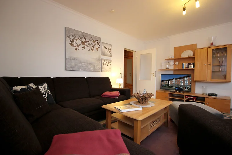 Neben dem gemütlichen Wohnraum mit Flachbild-TV, DVD-Player, Sound-System, kostenfreiem Internetzugang und gemütlicher Sitzecke gibt es zwei Schlafräume, eine separate Küche, einen Flur und ein Badezimmer mit Waschtisch, ebenerdiger Dusche, WC und Waschmaschine. Das Hauptschlafzimmer ist mit einem Doppelbett, einem Kleiderschrank, einem Schminktisch sowie einer kleinen Leseecke ausgestattet. Der zweite Schlafraum verfügt über eine Schlafcouch für 2 weitere Personen, einen Kleiderschrank sowie einen Flachbild-TV. Die Küche ist mit Geschirrspüler, Backofen, Cerankochfeld, Kühlschrank mit kleinem Gefrierfach, Esstisch für 4 Personen, Kaffeemaschine und Toaster komplett ausgestattet.
