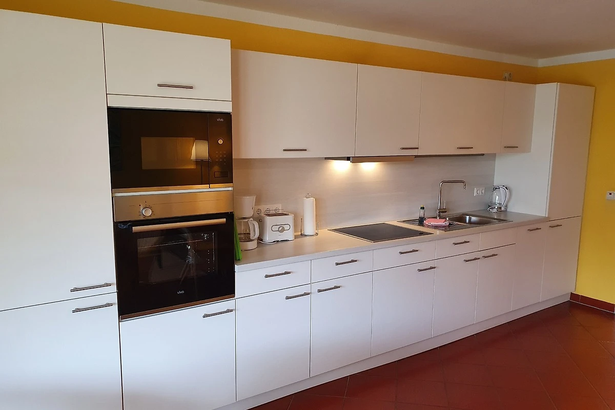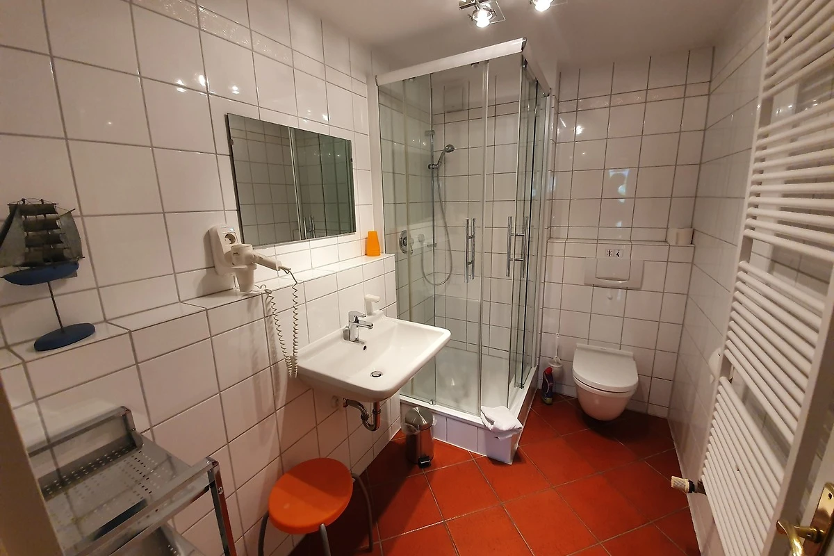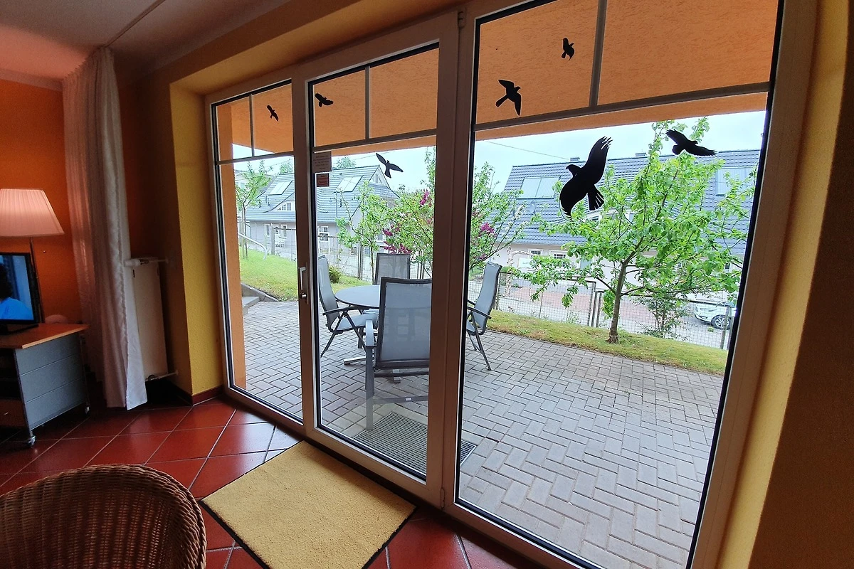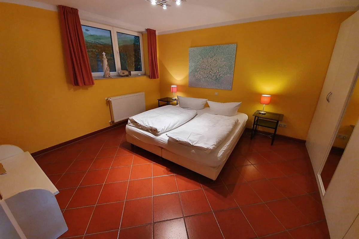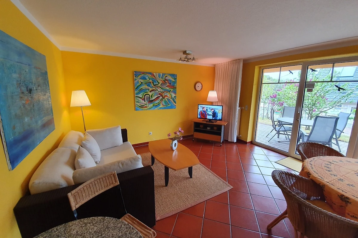 Ihr 2-Raum-Nichtraucher- Appartement 28RB6 Windböe mit separatem Eingang hat eine Grösse von ca. 57 qm und ist für max. 3 Personen eingerichtet. Die angrenzende und möblierte Terrasse mit Gartenblick lädt zum Entspannen und Verweilen ein. Ihre Wohnung ist aufgeteilt in einen Wohnraum mit Zugang zur Terrasse, eine offene Küche, ein separates Schlafzimmer und ein Bad mit Waschtisch, Glasdusche und WC. Das Wohnzimmer ist mit einem Essplatz und einer Sitzgruppe, welche die Schlafmöglichkeit für die 3. Personen bietet, möbliert. Die technische Ausstattung beinhaltet ein Flachbild-TV, WLAN und Radio. Die Küche ist mit Kühlschrank, Cerankochfeld, Geschirrspüler, Gefrierschrank, Backofen, Mikrowelle, Kaffeemaschine, Wasserkocher und Toaster komplett ausgestattet. Das Schlafzimmer verfügt über ein Doppelbett und Verdunklungsmöglichkeiten.