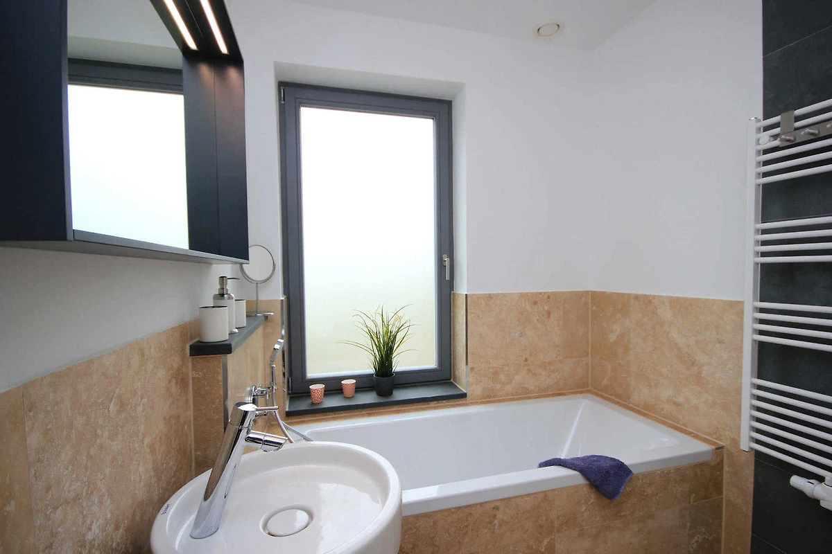 Die grosszügige und mit Liebe zum Detail eingerichtete Doppelhaushälfte 90899 - "Haus Sonnendeck" erstreckt sich über Erdgeschoss und Obergeschoss und ist mit bis zu 4 Personen belegbar.