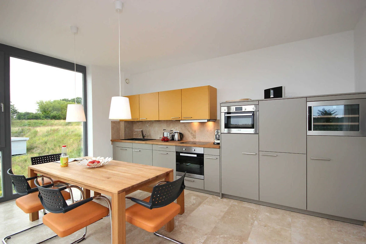 Das Wohnzimmer besticht durch seine offene Bauweise und lädt zum gemeinsamen Verweilen ein, ob zusammen auf dem Sofa oder in der gemütlichen Leseecke. Die technische Ausstattung umfasst einen grossen Flachbildfernseher, Blu-ray-Player und einen gebührenfreien WLAN-Zugang. Die erstklassige SieMatic-Küchenzeile ist mit hochwertigen Markengeräten und Eichenholzmöbeln ausgestattet. Unter anderem mit Geschirrspülmaschine, Induktionskochfeld, Backofen, Mikrowelle, Kühlschrank sowie einem Weinkühlschrank.