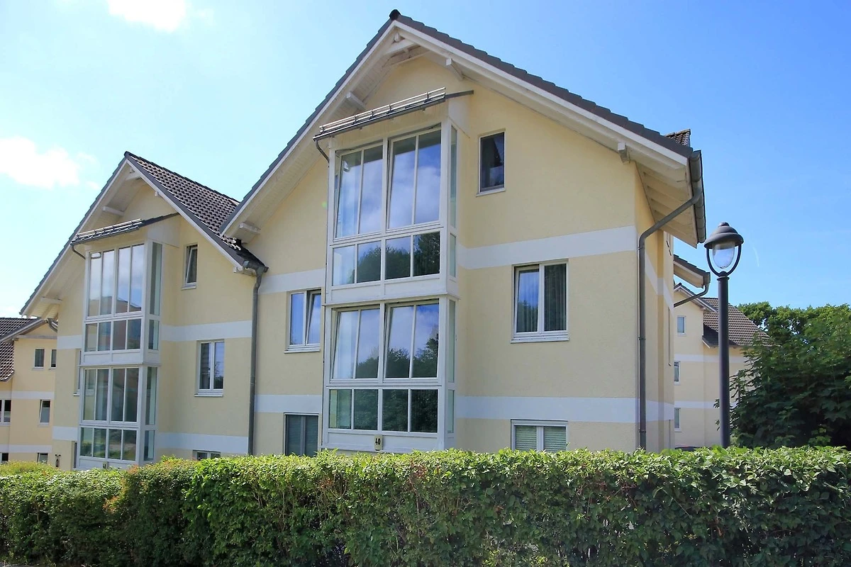 Die Unterkunft befindet auf dem Zinglingsberg. Die Hanglage auf einem der Binzer Hügeln garantiert aus vielen Wohnungen schöne Ausblicke auf den Binzer Ortskern, teilweise bis zum Schmacher See.