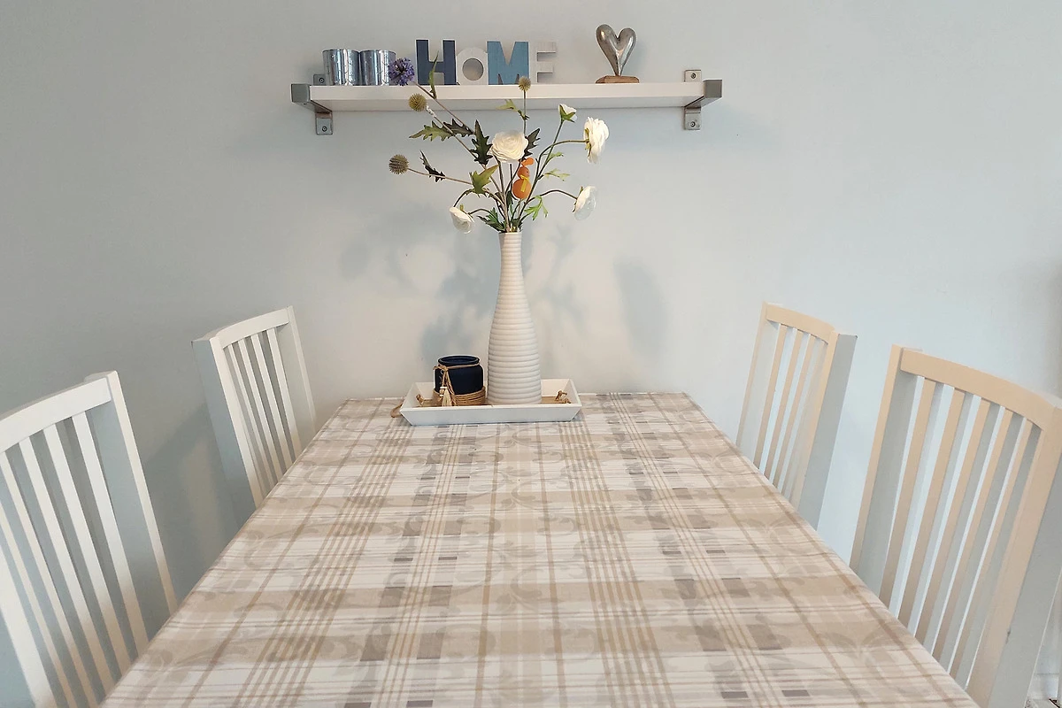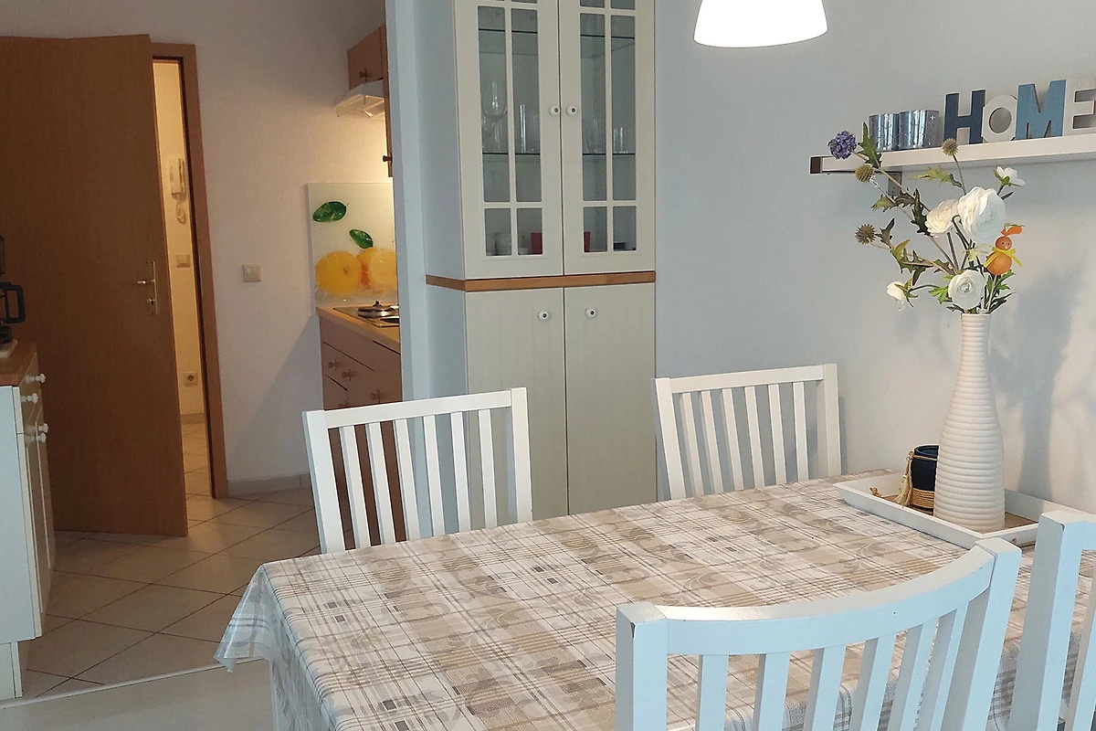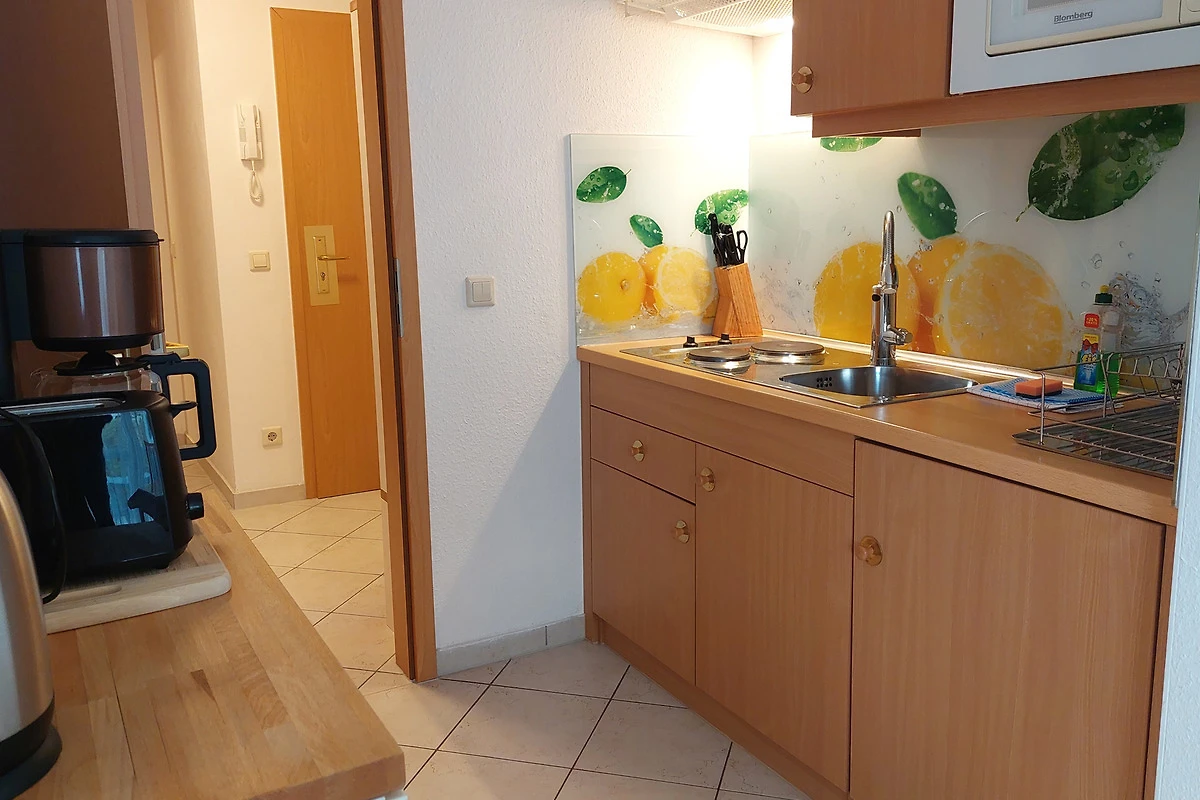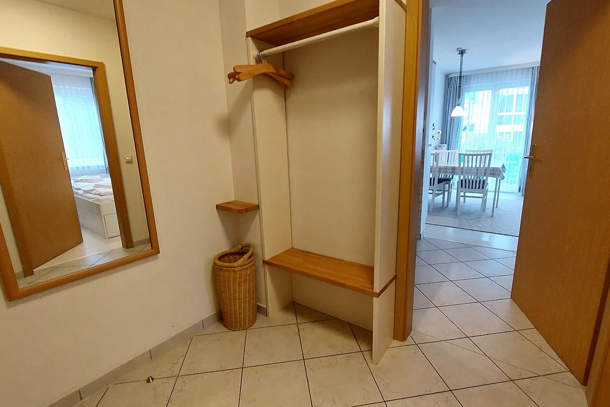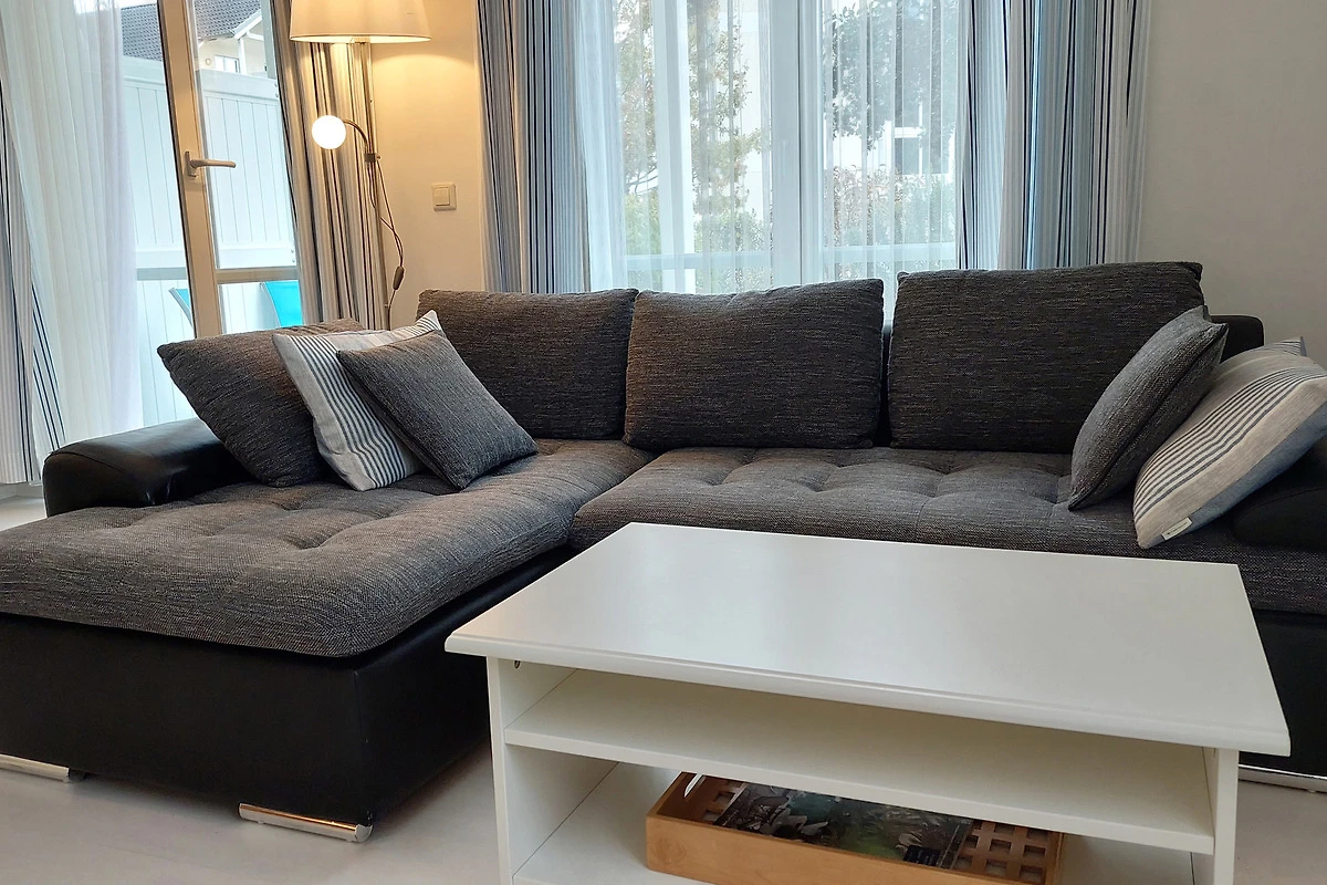 Ihre moderne 2-Zimmer-Nichtraucherwohnung 47RB2 hat eine Grösse ca. 49 qm. Sie ist für bis zu 4 Personen eingerichtet und befindet sich im Erdgeschoss des Hauses. Von der Terrasse, in Richtung Südwest gelegen, geniessen Sie abseits vom Strassenverkehr sonnige Momente. Die helle Wohnung teilt sich auf in einen Flur mit Garderobe, einen grosszügigen Wohnraum mit Essbereich und integrierter Pantry-Küche, ein Tageslichtbad sowie ein Schlafzimmer. Im Wohnraum finden Sie neben der Wohnlandschaft mit Schlafsofa, welche die Schlafmöglichkeit für bis zu 2 weiteren Personen bietet, noch einen separaten Esstisch mit 4 Stühlen. Die Küchenzeile ist ausgestattet mit 2-Platten-Kocheld, Mikrowelle, Kühlschrank mit Gefrierfach, Kaffeemaschine, Wasserkocher und Toaster. Zur technischen Ausstattung gehören zwei Smart-TVs, stabiles WLAN und ein neues DAB+ - Radio mit CD-Laufwerk, Bluetooth, USB-Playback und Charging mit Fernbedienung vom Typ Digitradio 370 CD BT von TechniSat.