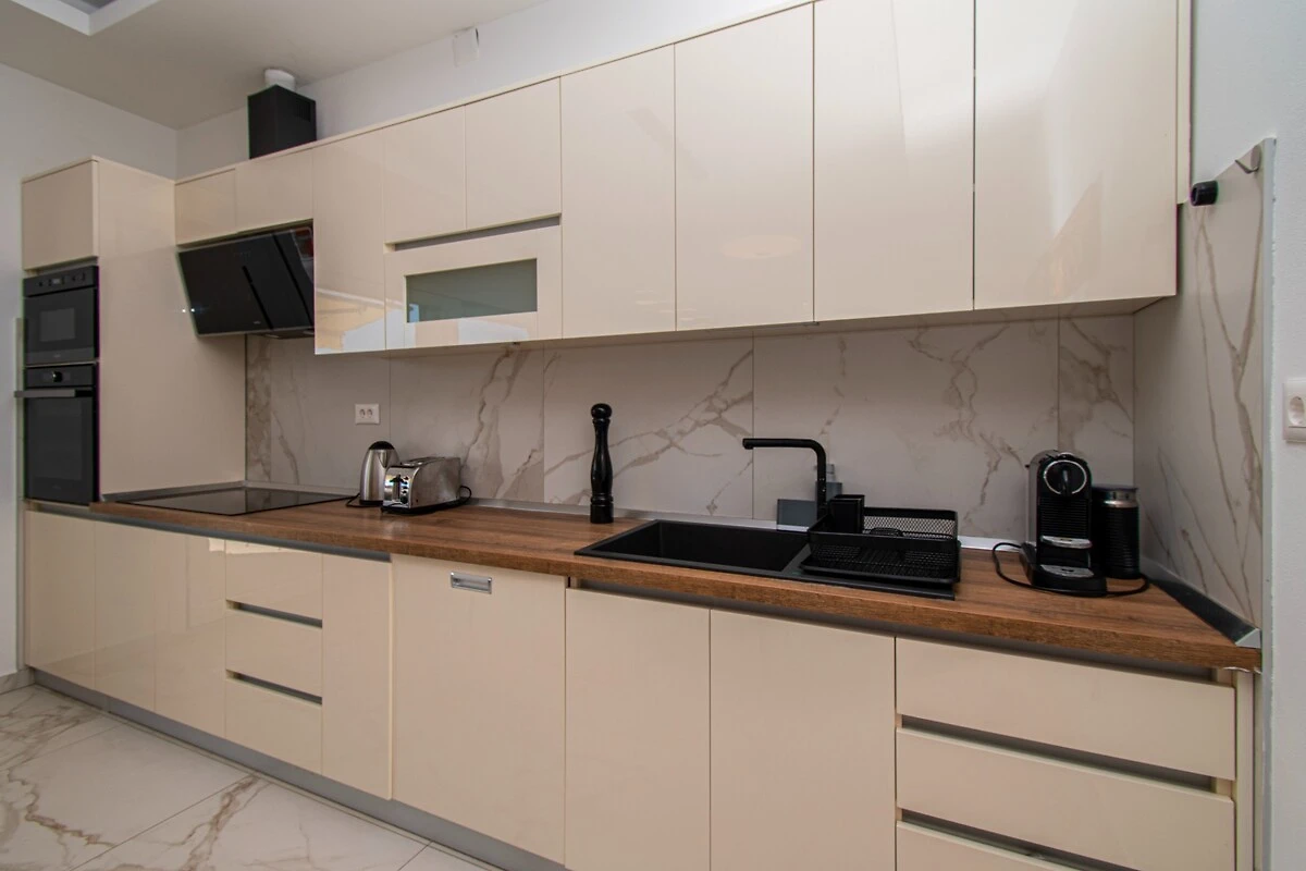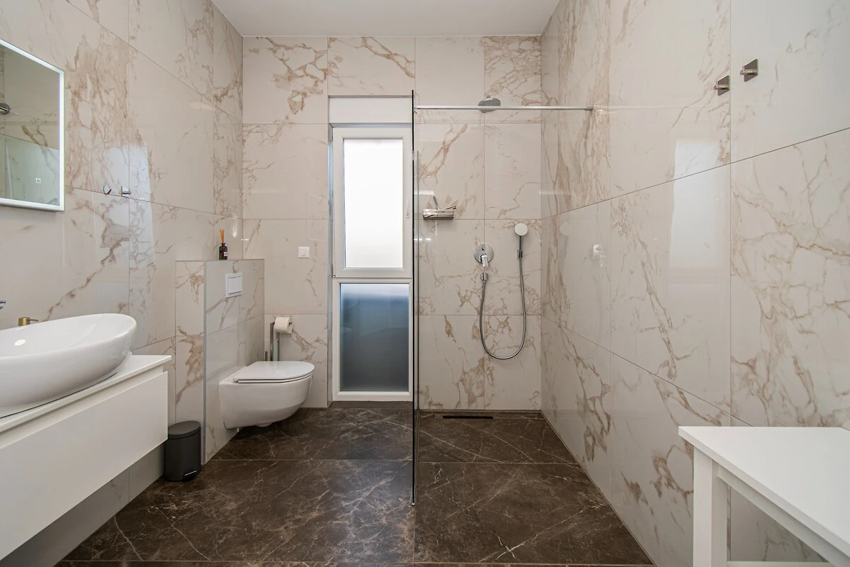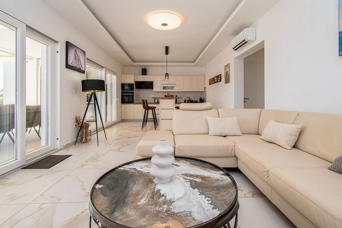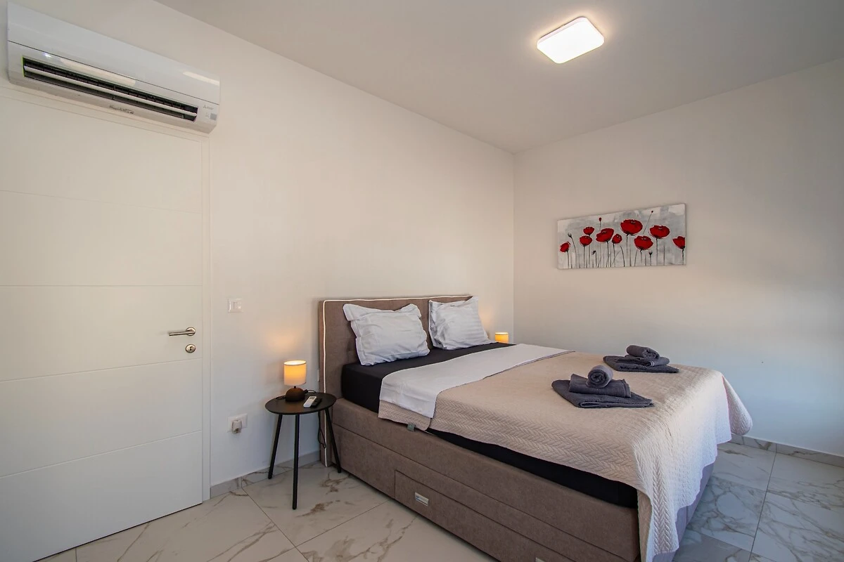 Die Innenräume der Villa sind modern eingerichtet und mit allem ausgestattet, was Sie für einen angenehmen Aufenthalt von bis zu 6 Personen benötigen. Im Erdgeschoss befinden sich ein klimatisiertes Wohnzimmer, eine voll ausgestattete Küche mit Kochinsel sowie ein Badezimmer. Im Obergeschoss gibt es drei geräumige Schlafzimmer mit Doppelbetten, Klimaanlage und TV. Außerdem stehen hier ein weiteres Badezimmer sowie ein separates Gäste-WC zur Verfügung. Insgesamt bietet die Villa drei Schlafzimmer, zwei Badezimmer und ein Gäste-WC. Zwei der Schlafzimmer verfügen über einen Balkon mit wunderschönem Blick auf das Meer und den Nationalpark Brijuni.