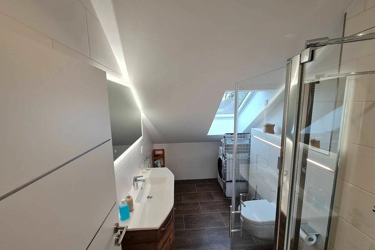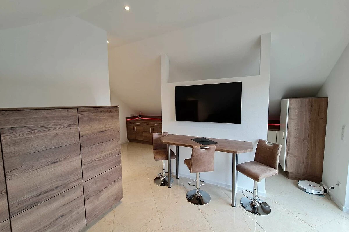 Das Studio ist im DG des Hauses gelegen und ca. 35 qm gross. Balkon, ebenerdige Dusche, Waschmaschine mit Trockner, hochwertige Einbauküche mit Geschirrspüler, Backofen und vollständiger Ausstattung, LAN und W-LAN sind nur einige High-Lights. Eine comfortable Schlafcouch mit Lattenrost verspricht gemütliche Abende und traumreiche Nächte. Der Garten mit Grillmöglichkeit kann gern mit benutzt werden.