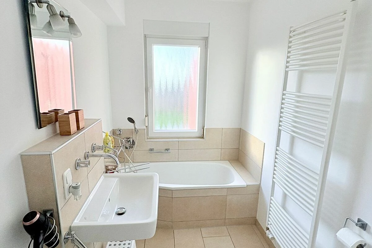 • Bad mit Badewanne, ebenerdiger Dusche & Fön