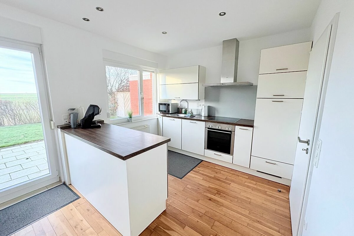 Die grosse möblierte Terrasse mit Garten lädt zu langen Sommerabenden ein. In der voll eingerichteten Küche fehlt es an nichts: Kaffeemaschine, Spülmaschine, Backofen, sogar eine Waschmaschine steht zur Verfügung. Nach einem langen Strandtag kannst du einfach ankommen, aufatmen und loslassen.