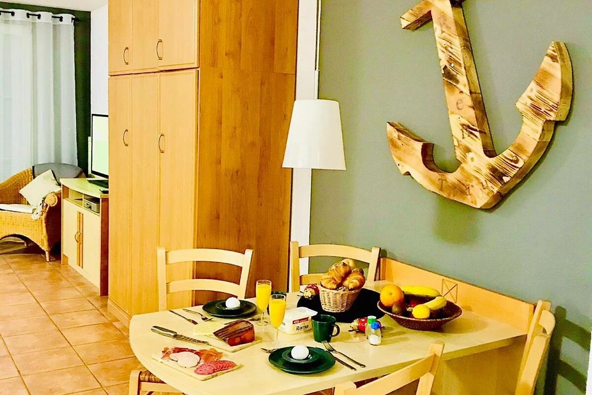 • Die moderne Essecke, bietet ausreichend Platz für 4 Personen. Im Wohnbereich befindet sich ein komfortables Schrankbett, welches 2 Gästen eine gemütliche Schlafmöglichkeit bietet. Zum TV-Vergnügen in den Abendstunden steht Ihnen ein LCD-Flachbildschirm mit Kabelanschluss zur Verfügung.