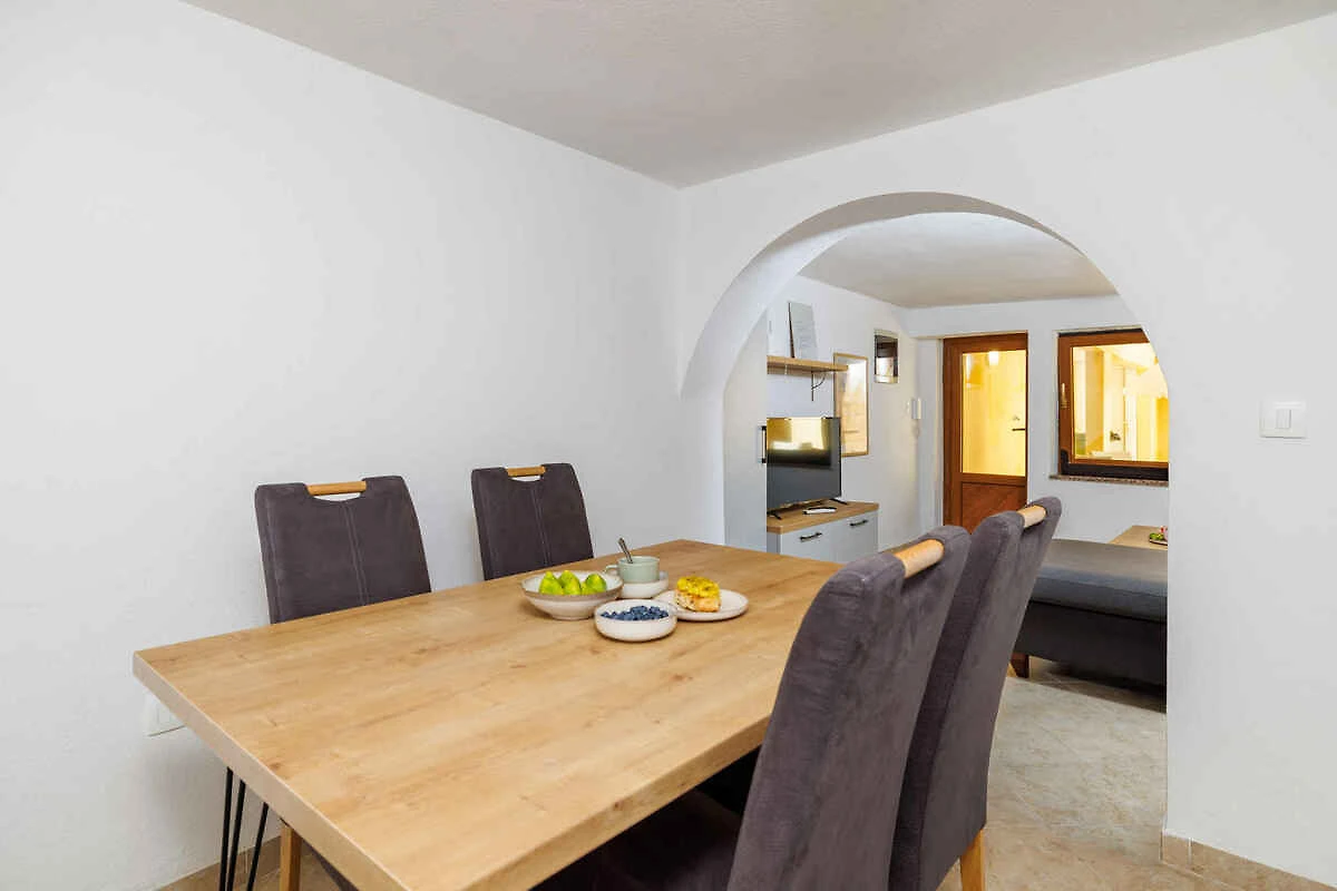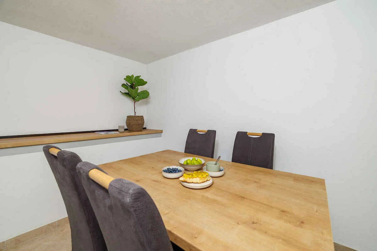 Das Ferienhaus ist modern eingerichtet. Das Grundstück befindet sich im Ortszentrum.