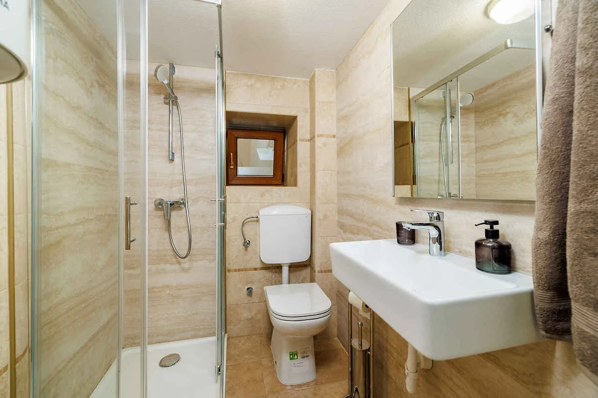 Einkauf 100 m, Restaurant 150 m, Ortszentrum 50 m. Flughafen in 25 km. Im Sommer: Bademöglichkeit 150 m (Strand 500 m).