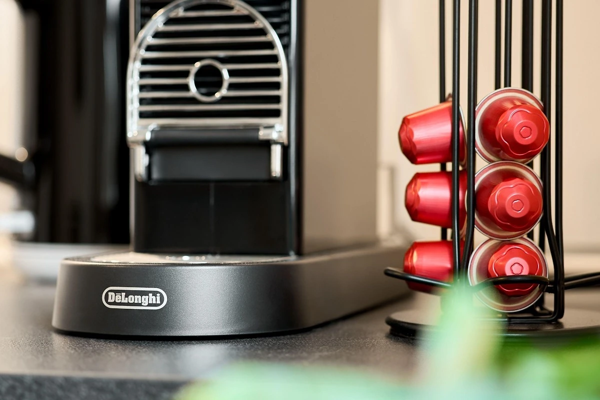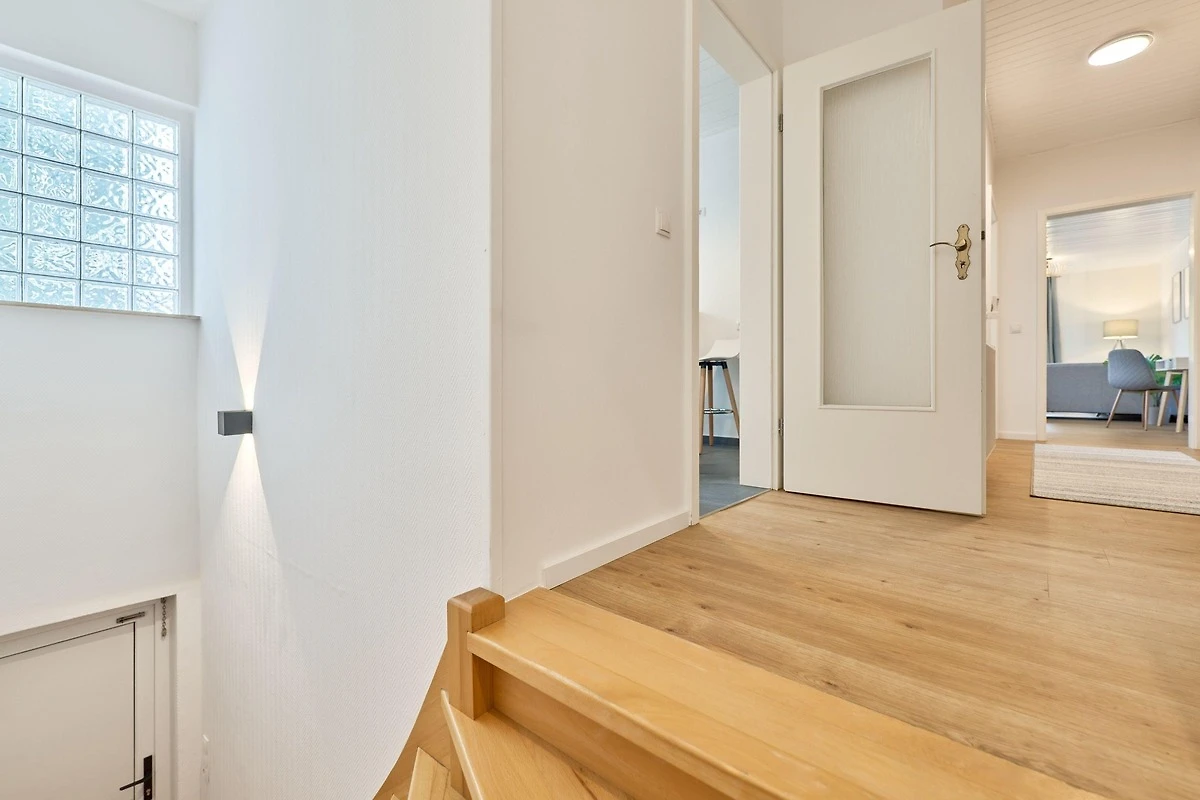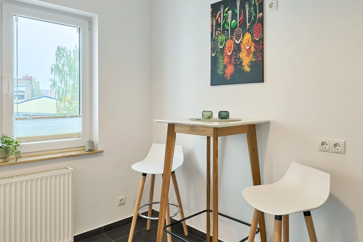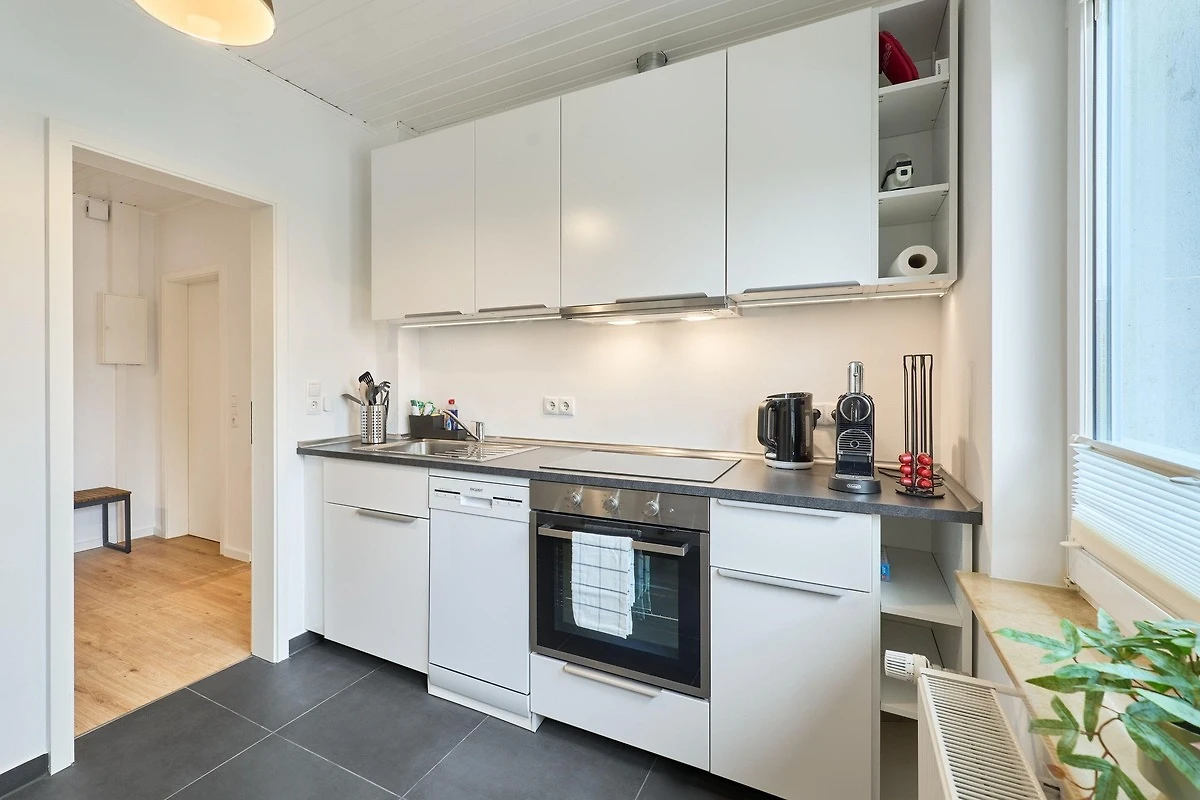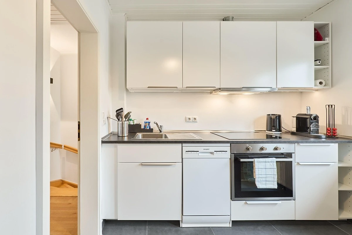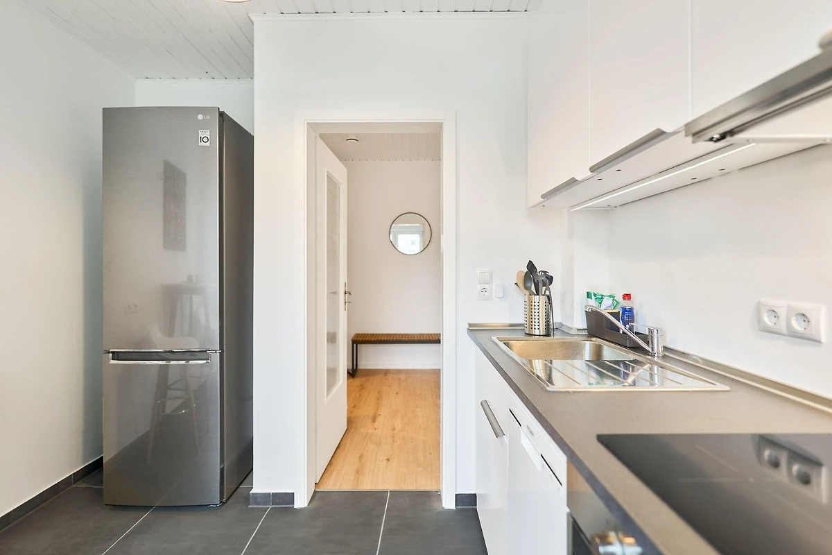 Die modern ausgestattete Ferienwohnung verfügt über ein Schlafzimmer, ein Badezimmer mit Dusche sowie einen komfortablen Wohn- und Sitzbereich mit Flachbild-TV. Die Küche ist komplett eingerichtet mit Kühlschrank und Geschirrspüler.