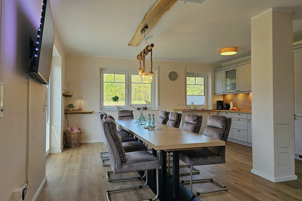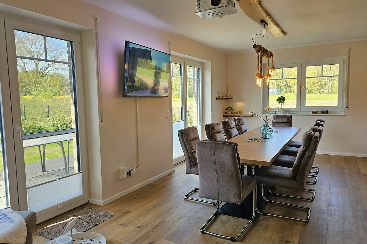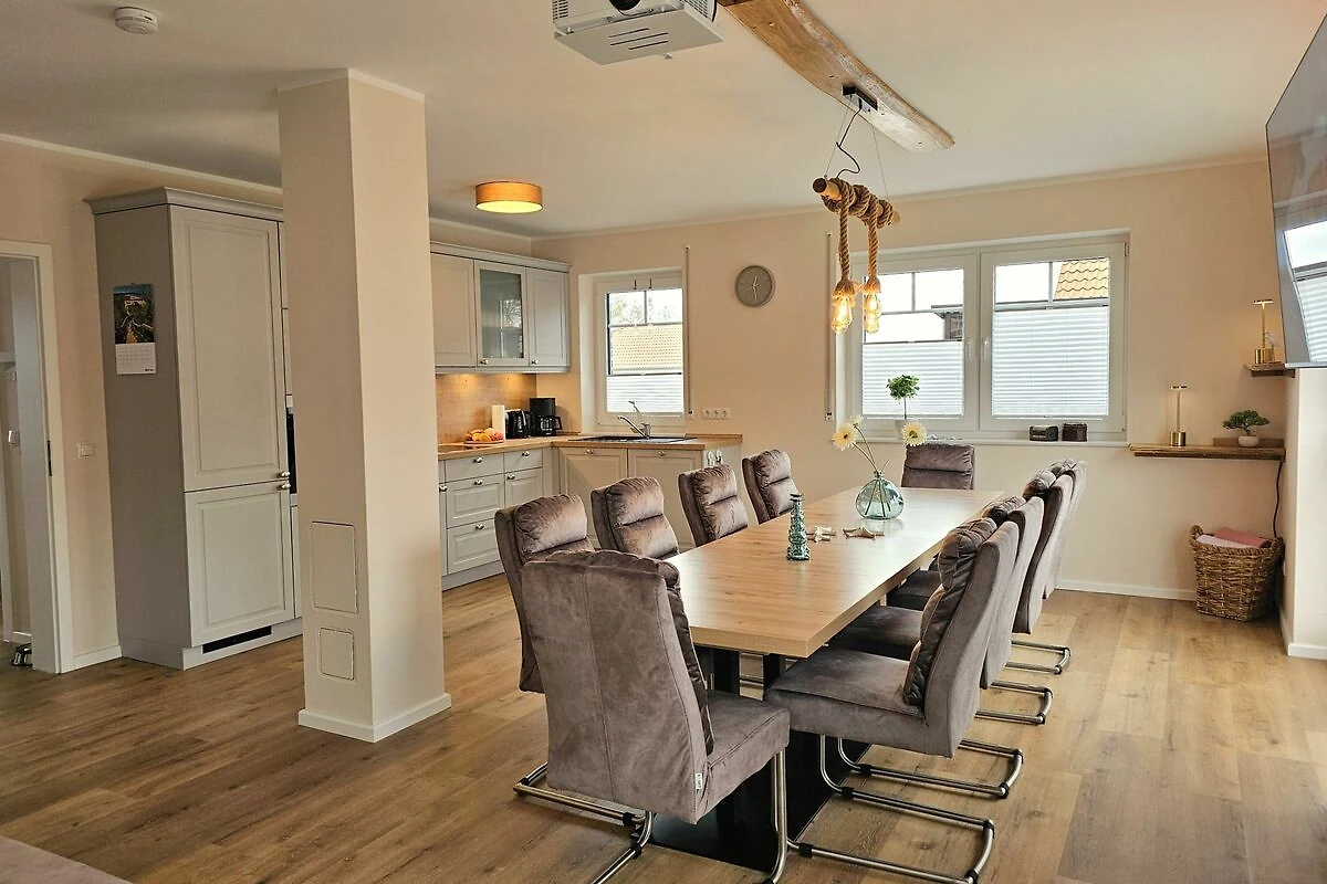 Das große Doppelhaus Xena & Liv, gelegen in der malerischen Umgebung von Biendorf, bietet Ihnen und Ihrer Familie einen unvergesslichen Aufenthalt. Mit einer großzügigen Fläche von 250 m² ist diese behagliche Unterkunft ideal für bis zu 20 Personen ausgelegt und umfasst insgesamt 6 Zimmer, darunter 10 Schlafzimmer und 6 Badezimmer. Damit ist das Ferienhaus besonders familienfreundlich und bietet ausreichend Platz für alle. Die beiden Haushälften sind durch eine abschließbare Durchgangstür miteinander verbunden und sind somit ideal für große Gruppen, oder produktive Workations. Die Terrasse kann ebenfalls zu einer großen Terrasse geöffnet werden. Hier ist Platz für leckere Grillabende.