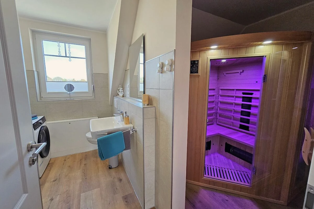 Das Ferienhaus Xena & Liv ist komplett rauchfrei und bietet eine kinderfreundliche Atmosphäre. Besonderer Wert wurde auf die Ausstattung gelegt, um einen komfortablen Aufenthalt zu garantieren. Ausgestattet mit Fußbodenheizung und einem modernen Badezimmer mit bodengleicher Dusche, schafft es eine gemütliche und einladende Atmosphäre. Praktische Annehmlichkeiten wie eine Waschmaschine und ein Trockner sind ebenfalls vorhanden, sodass Sie auch während Ihres Aufenthalts für frische Wäsche sorgen können. Ein besonderes Highlight ist die Infrarotkabine, die für wohltuhende Tiefenentspannung nach einem erlebnisreichen Tag sorgt. Natürlich sind Bettwäsche und Handtücher im Preis inklusive, sodass Ihr Urlaub sofort beginnen kann.