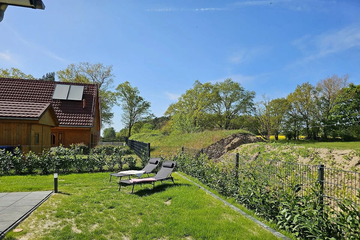 Besonders hervorzuheben ist der Außenbereich des Ferienhauses, der ein abgeschlossenes Grundstück umfasst. Hier finden Sie eine große Terrasse mit Gartenmöbeln, die ideal für sonnige Stunden im Freien ist, sowie einen Grill für gemütliche Abende. Die Liegewiese und die Sonnenliegen laden zum Entspannen ein. Der Garten bietet nicht nur Ruhe und Erholung, sondern auch die Möglichkeit, die Natur in vollen Zügen zu genießen.