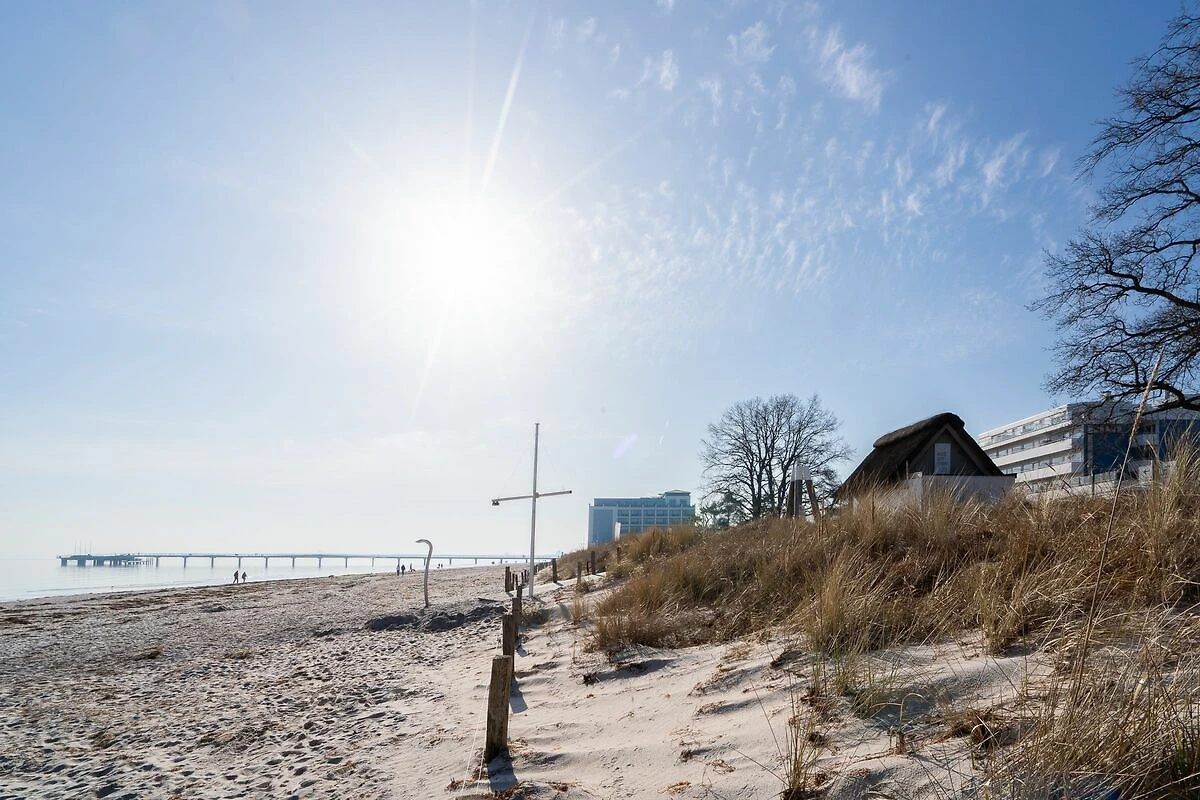 Dieses 1-Zimmer-Appartement mit direktem Meerblick liegt in erster Strandreihe in Scharbeutz und ist nur durch die Strandallee vom feinsandigen Ostseestrand getrennt. Die Ferienwohnung befindet sich im 3. Obergeschoss des Strandhotels (Strandallee 124) und ist bequem mit dem Fahrstuhl erreichbar.