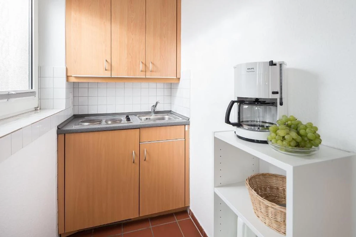 Das Appartement verfügt über ein Schrankbett und ein Schlafsofa. Die Kochnische ist mit einem 2-Platten-Herd, Kühlschrank, Toaster und alle notwendigen Küchenutensilien ausgestattet. Der Esstisch lädt zu geselligen Mahlzeiten ein.