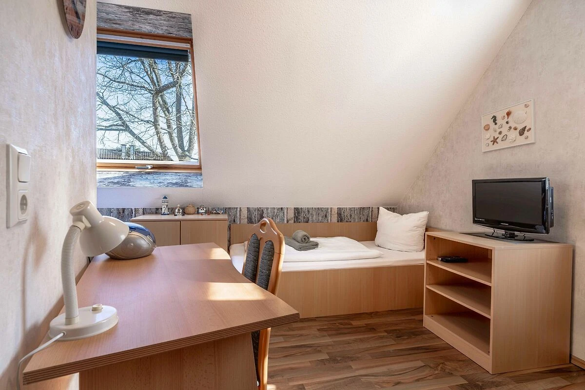 Diese Doppelhaushälfte in Zingst bietet Ihnen auf 71 m² eine angenehm aufgeteilte Unterkunft für bis zu 4 Personen und eignet sich besonders für Familien sowie für einen erholsamen Aufenthalt nahe am Strand und dem Ortszentrum. Das Haus liegt nur etwa 250 m vom Meer und vom Sandstrand entfernt. Auch Restaurants erreichen Sie bereits nach rund 100 m, die nächste Einkaufsmöglichkeit nach etwa 1 km, das Ortszentrum nach ca. 500 m. Der öffentliche Nahverkehr ist in rund 150 m erreichbar.